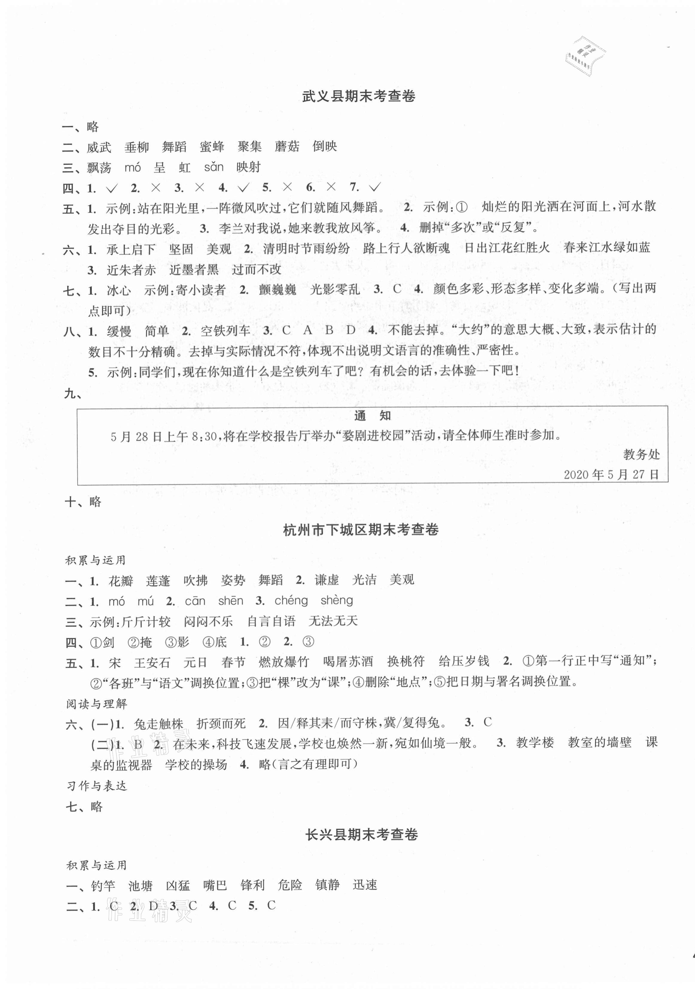 注:目前有些书本章节名称可能整理的还不是很完善,但都是按照顺序排列的,请同学们按照顺序仔细查找。练习册 2021年各地期末名卷精选三年级语文下册人教版 答案主要是用来给同学们做完题方便对答案用的,请勿直接抄袭。