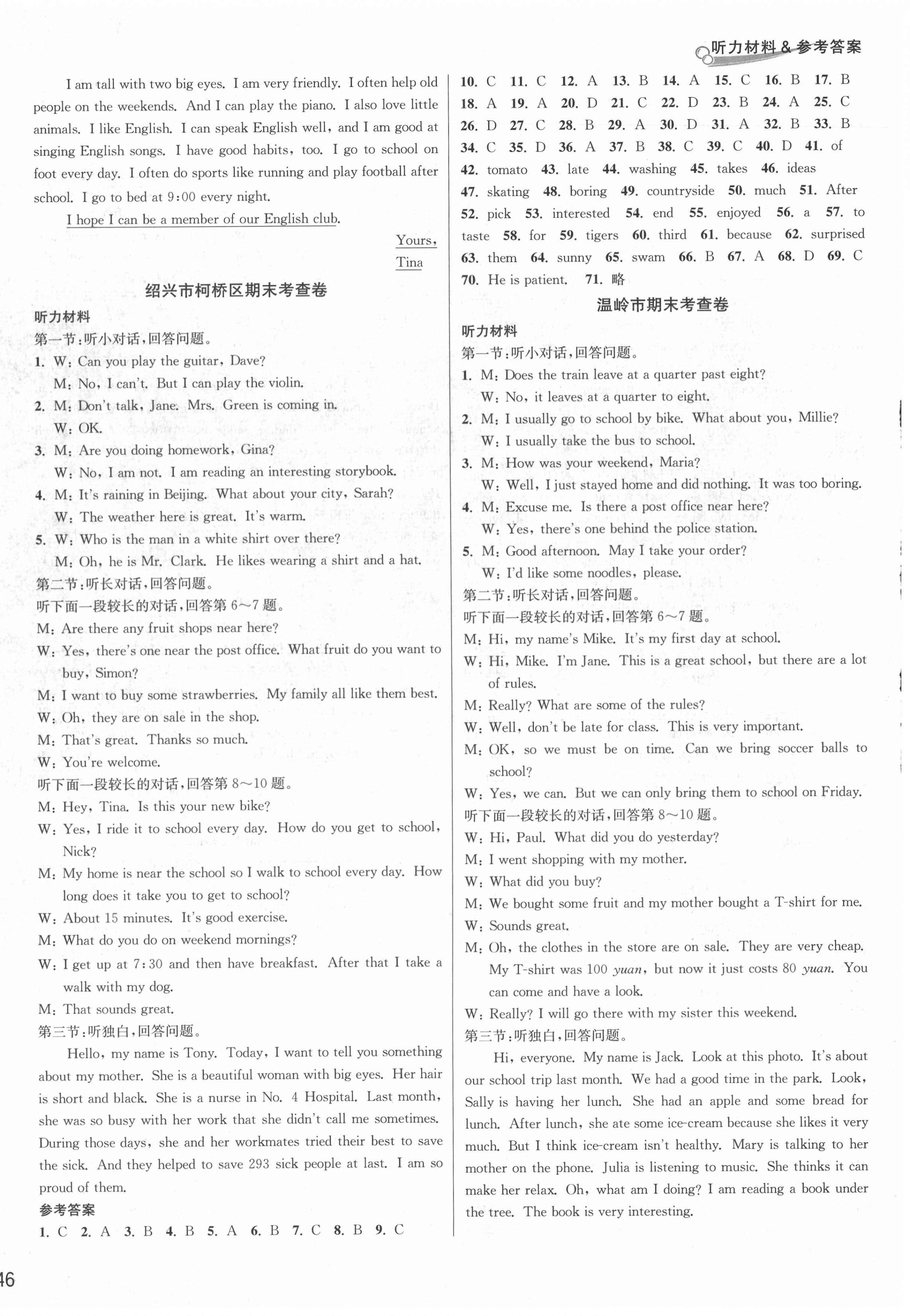 注:目前有些书本章节名称可能整理的还不是很完善,但都是按照顺序排列的,请同学们按照顺序仔细查找。练习册 2021年各地期末名卷精选七年级英语下册人教版 答案主要是用来给同学们做完题方便对答案用的,请勿直接抄袭。