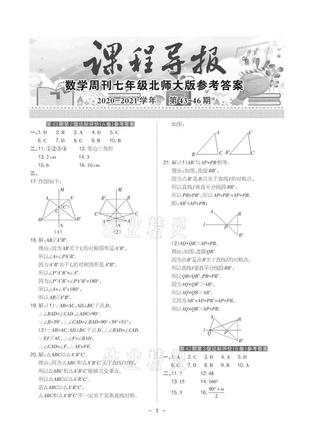 注:目前有些书本章节名称可能整理的还不是很完善,但都是按照顺序排列的,请同学们按照顺序仔细查找。练习册 2021年课程导报七年级数学下册北师大版 答案主要是用来给同学们做完题方便对答案用的,请勿直接抄袭。