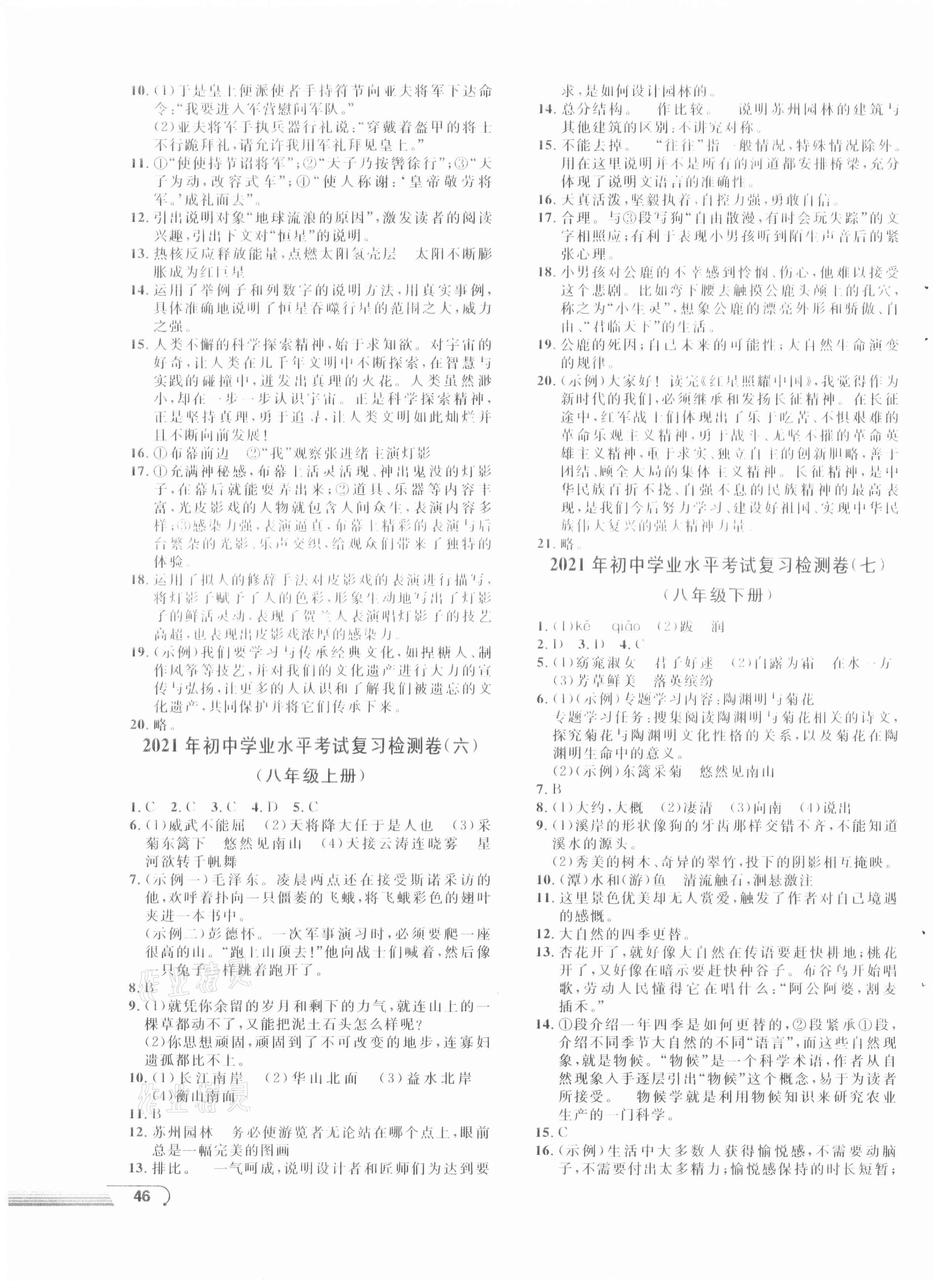 注:目前有些书本章节名称可能整理的还不是很完善,但都是按照顺序排列的,请同学们按照顺序仔细查找。练习册 2021年剑指中考语文初中学业水平考试复习检测卷郴州专版 答案主要是用来给同学们做完题方便对答案用的,请勿直接抄袭。