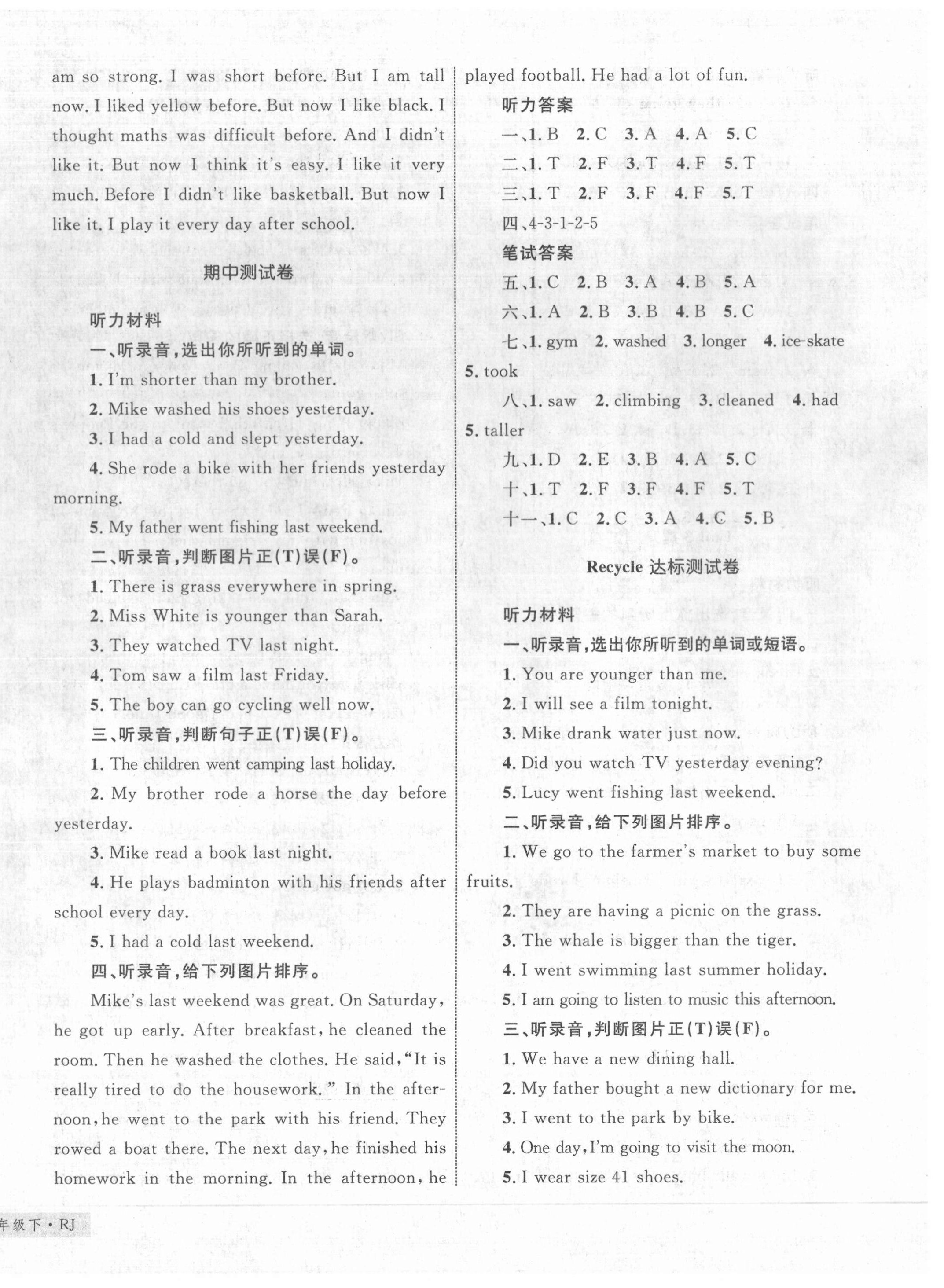 注:目前有些书本章节名称可能整理的还不是很完善,但都是按照顺序排列的,请同学们按照顺序仔细查找。练习册 2021年优化设计单元测试卷六年级英语下册人教版 答案主要是用来给同学们做完题方便对答案用的,请勿直接抄袭。