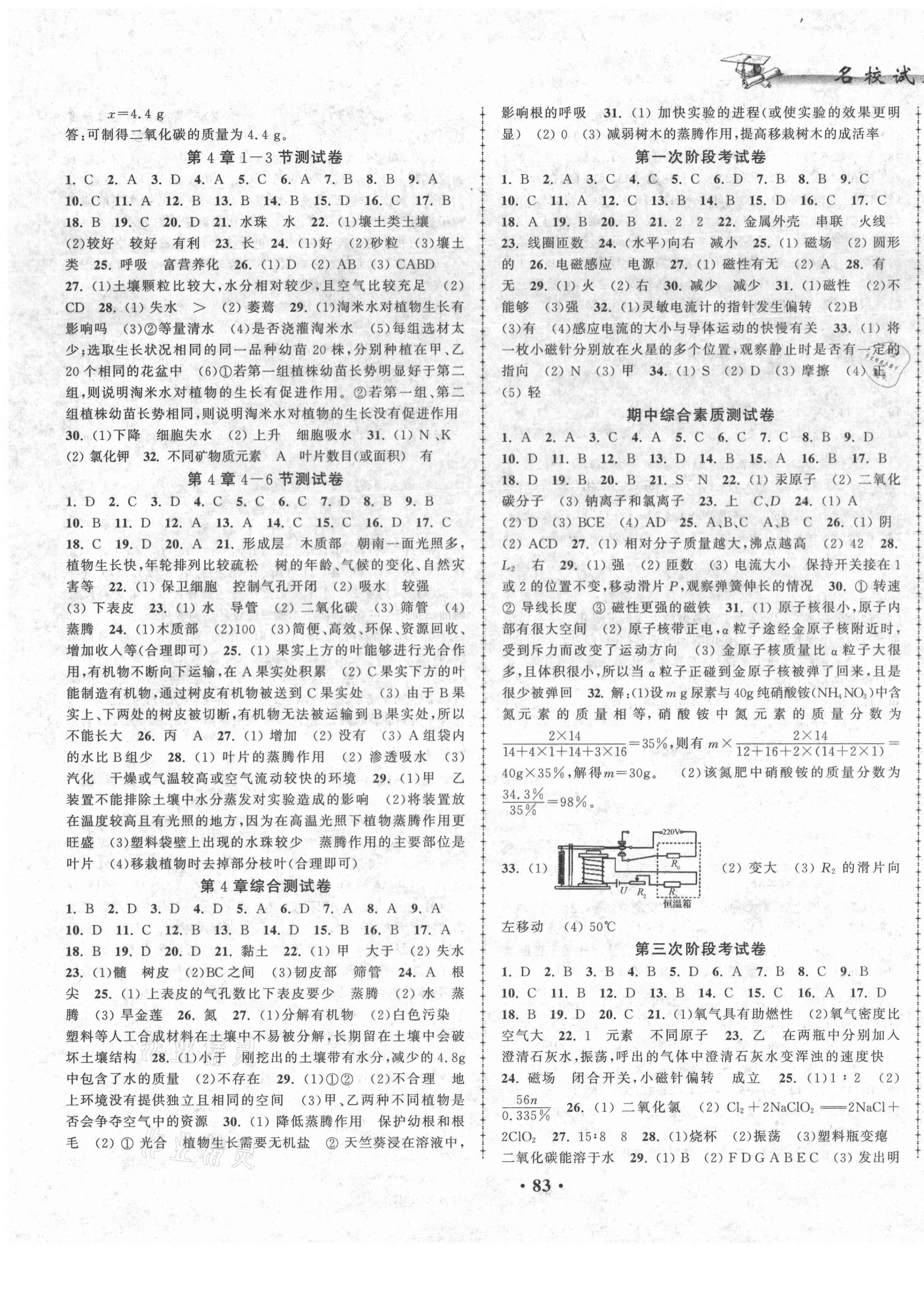 注:目前有些书本章节名称可能整理的还不是很完善,但都是按照顺序排列的,请同学们按照顺序仔细查找。练习册 2021年名校试卷精选八年级科学下册浙教版 答案主要是用来给同学们做完题方便对答案用的,请勿直接抄袭。
