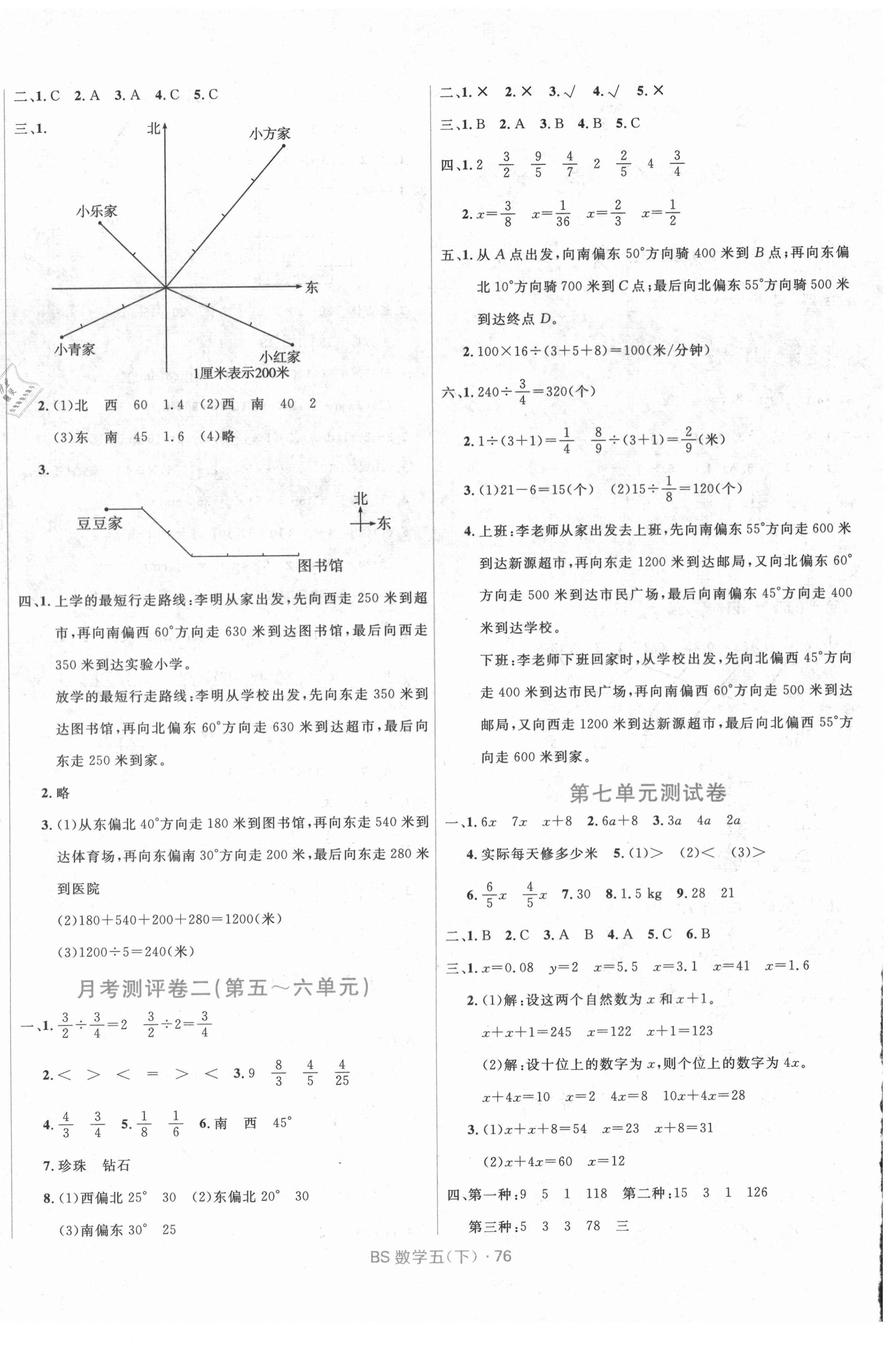 注:目前有些书本章节名称可能整理的还不是很完善,但都是按照顺序排列的,请同学们按照顺序仔细查找。练习册 2021年赢在起跑线天天100分小学优化测试卷五年级数学下册北师大版 答案主要是用来给同学们做完题方便对答案用的,请勿直接抄袭。