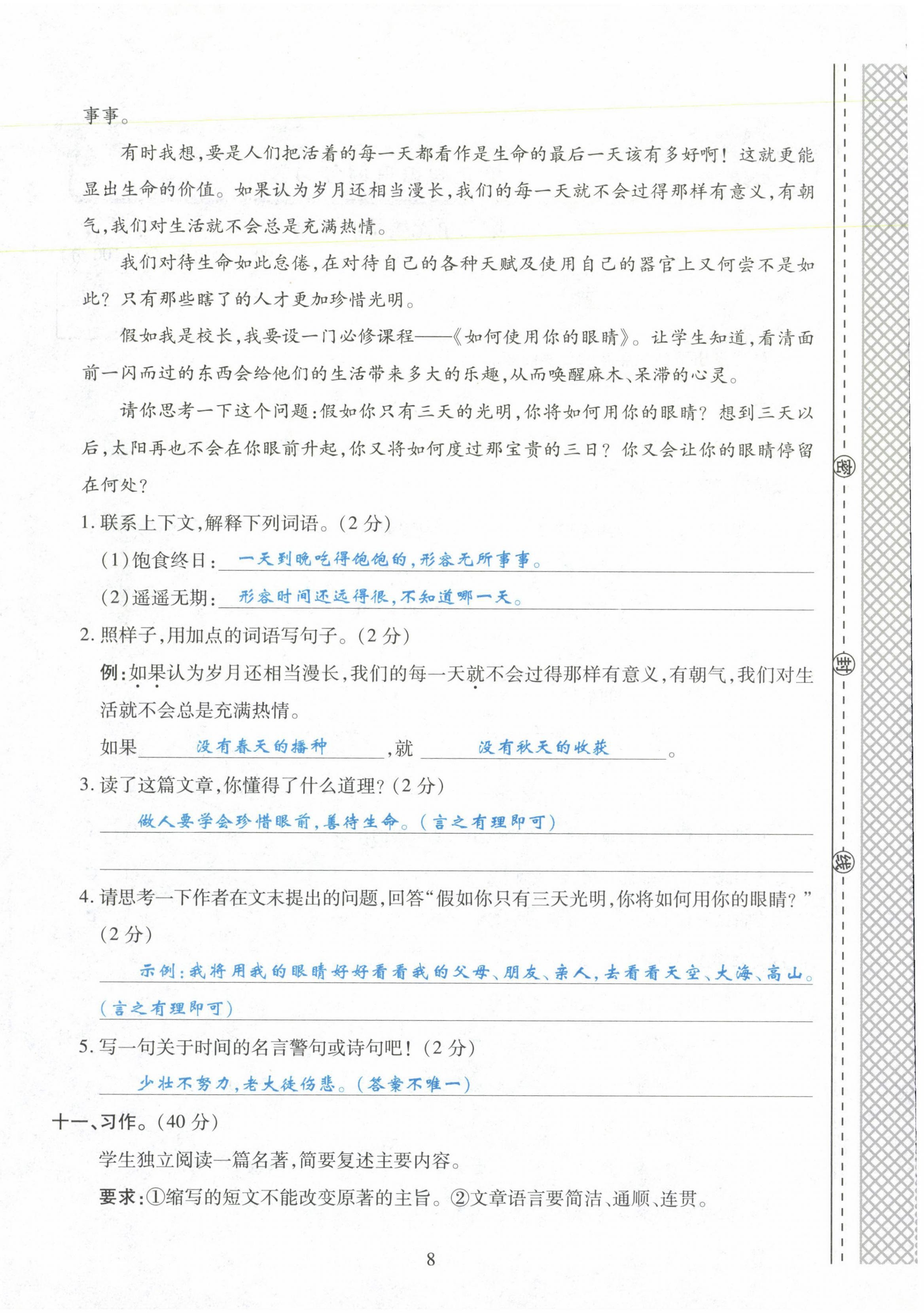 注:目前有些书本章节名称可能整理的还不是很完善,但都是按照顺序排列的,请同学们按照顺序仔细查找。练习册 2021年玩转期末高分必刷六年级语文下册部编版 答案主要是用来给同学们做完题方便对答案用的,请勿直接抄袭。