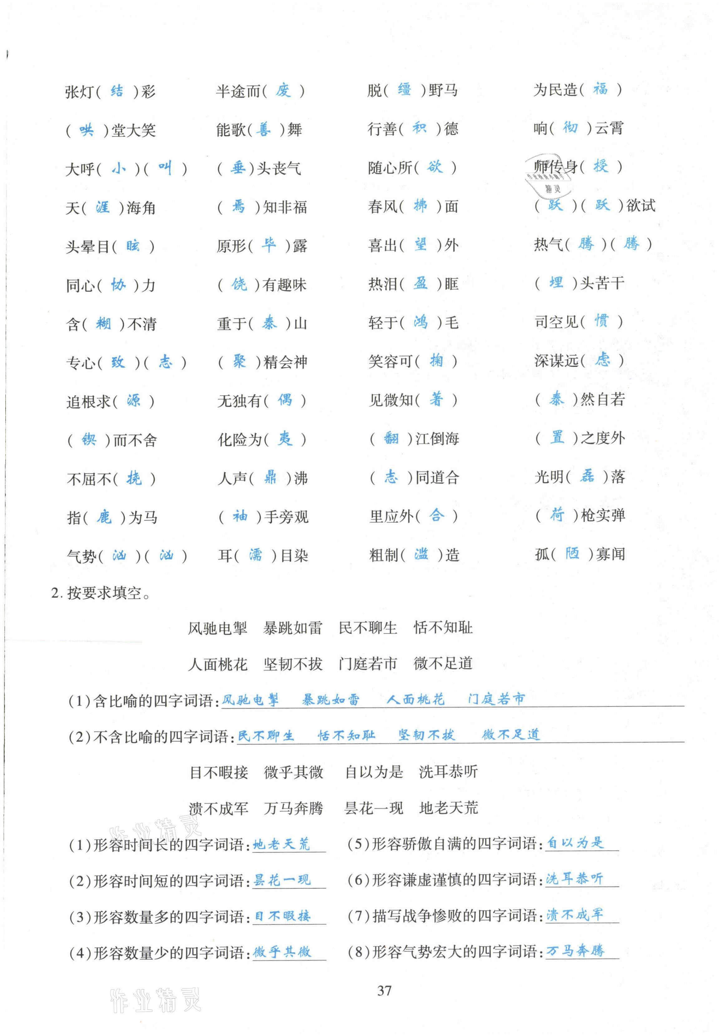 注:目前有些书本章节名称可能整理的还不是很完善,但都是按照顺序排列的,请同学们按照顺序仔细查找。练习册 2021年玩转期末高分必刷六年级语文下册部编版 答案主要是用来给同学们做完题方便对答案用的,请勿直接抄袭。