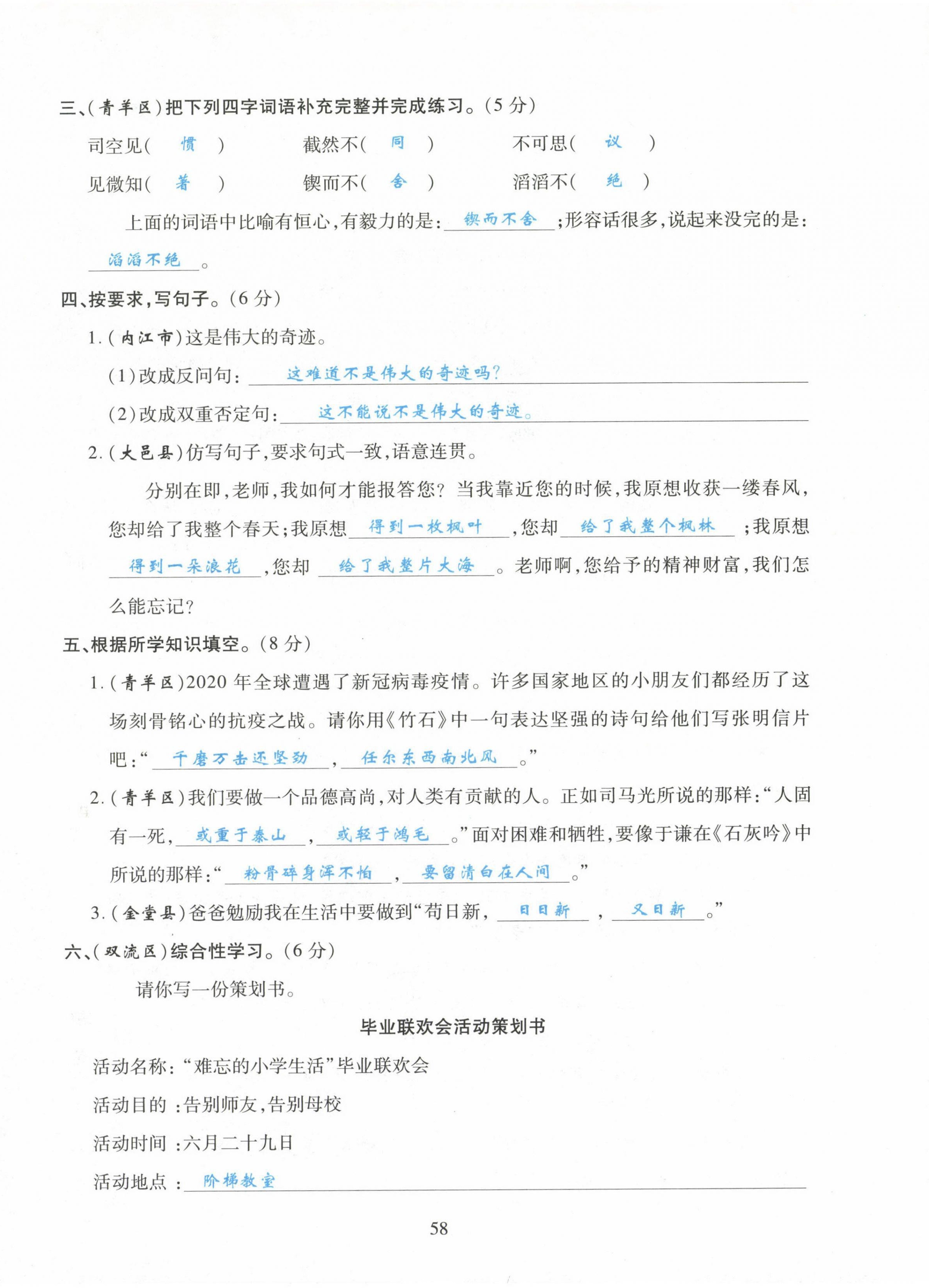 注:目前有些书本章节名称可能整理的还不是很完善,但都是按照顺序排列的,请同学们按照顺序仔细查找。练习册 2021年玩转期末高分必刷六年级语文下册部编版 答案主要是用来给同学们做完题方便对答案用的,请勿直接抄袭。