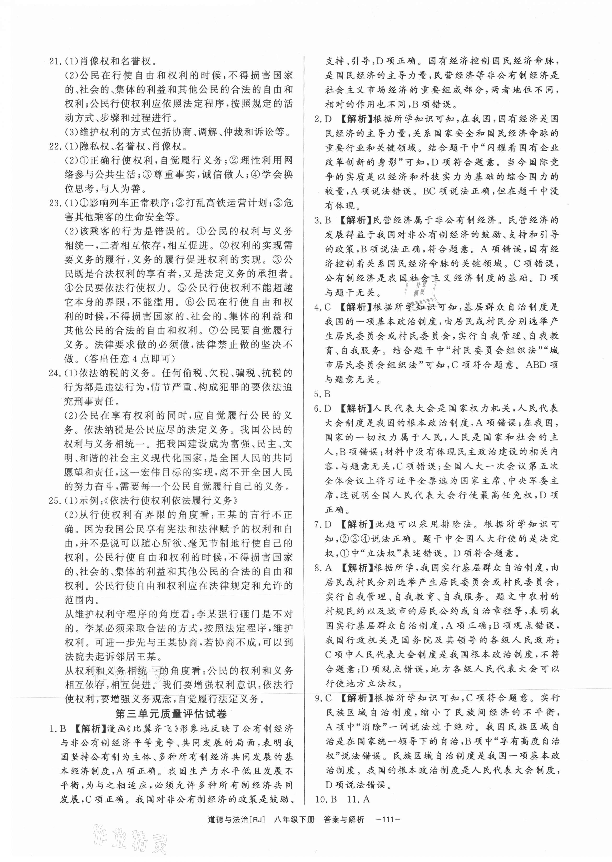 注:目前有些书本章节名称可能整理的还不是很完善,但都是按照顺序排列的,请同学们按照顺序仔细查找。练习册 2021年全效学习八年级道德与法治下册人教版精华版 答案主要是用来给同学们做完题方便对答案用的,请勿直接抄袭。