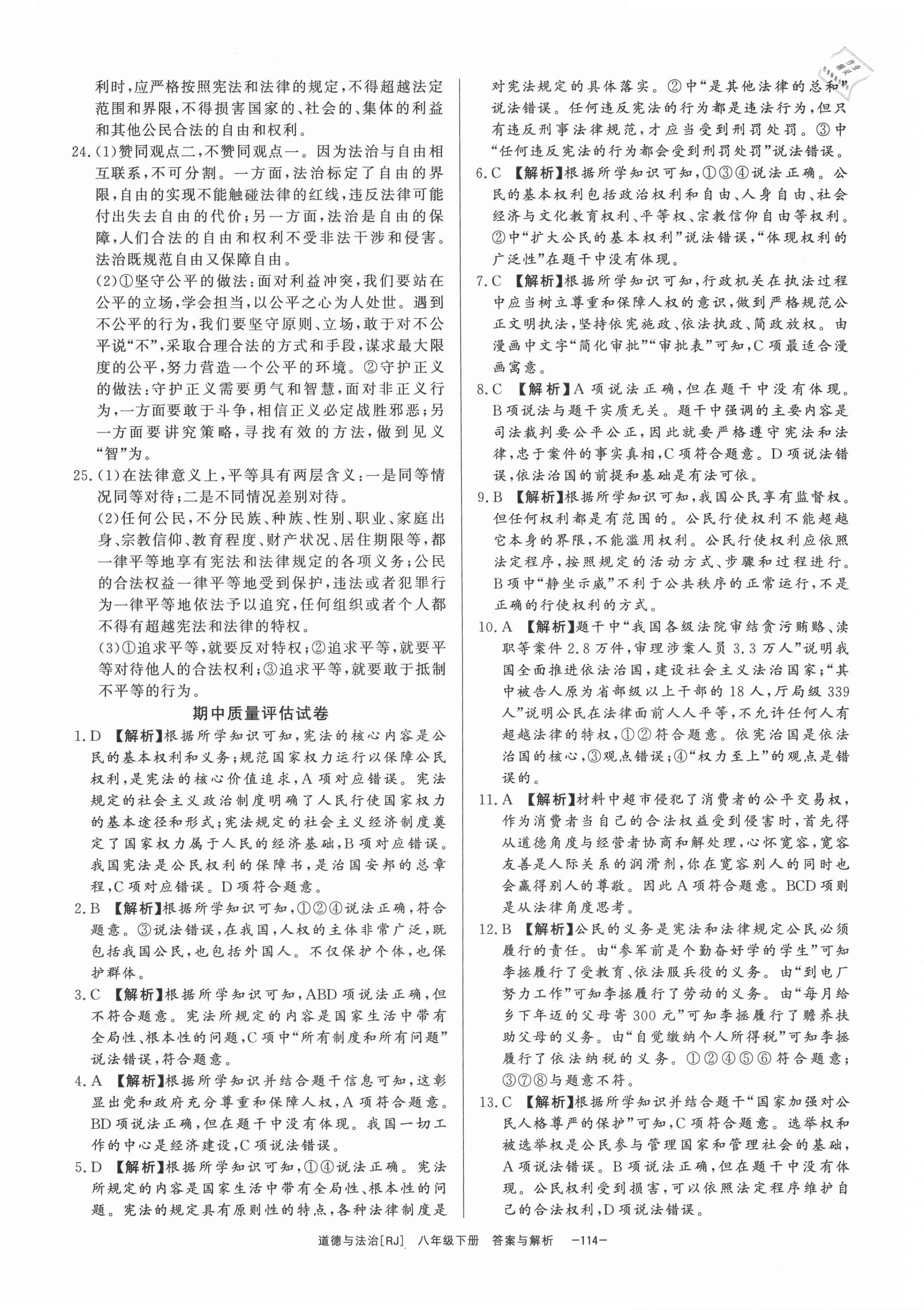 注:目前有些书本章节名称可能整理的还不是很完善,但都是按照顺序排列的,请同学们按照顺序仔细查找。练习册 2021年全效学习八年级道德与法治下册人教版精华版 答案主要是用来给同学们做完题方便对答案用的,请勿直接抄袭。