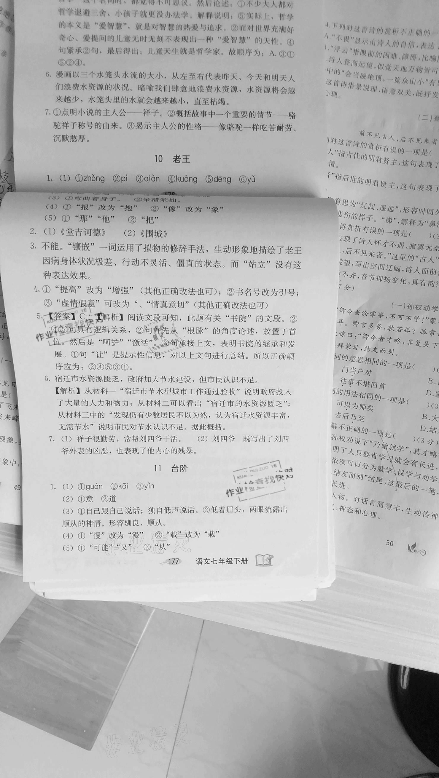 注:目前有些书本章节名称可能整理的还不是很完善,但都是按照顺序排列的,请同学们按照顺序仔细查找。练习册 2021年课堂精炼九分钟七年级语文下册人教版 答案主要是用来给同学们做完题方便对答案用的,请勿直接抄袭。