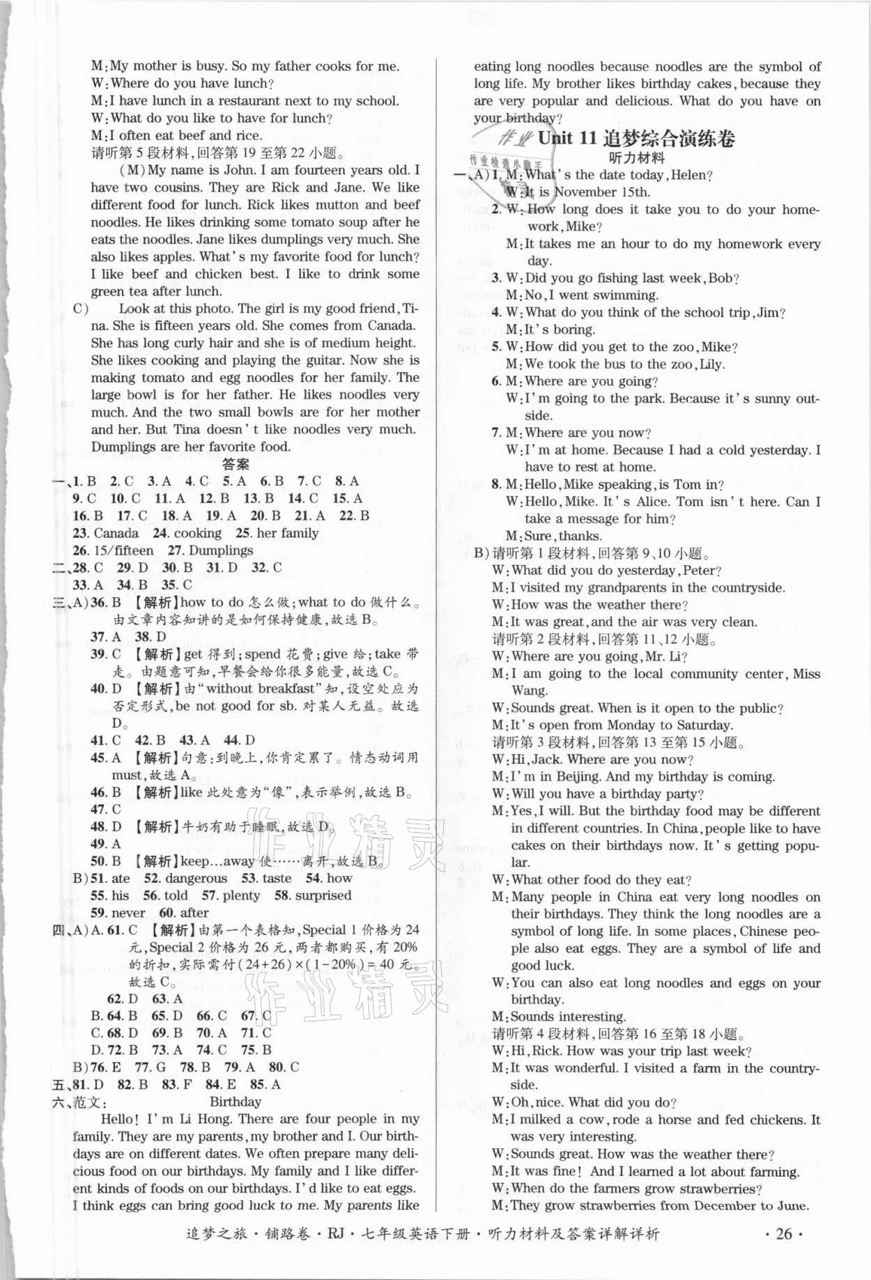 注:目前有些书本章节名称可能整理的还不是很完善,但都是按照顺序排列的,请同学们按照顺序仔细查找。练习册 2021年追梦之旅铺路卷七年级英语下册人教版江西专版 答案主要是用来给同学们做完题方便对答案用的,请勿直接抄袭。