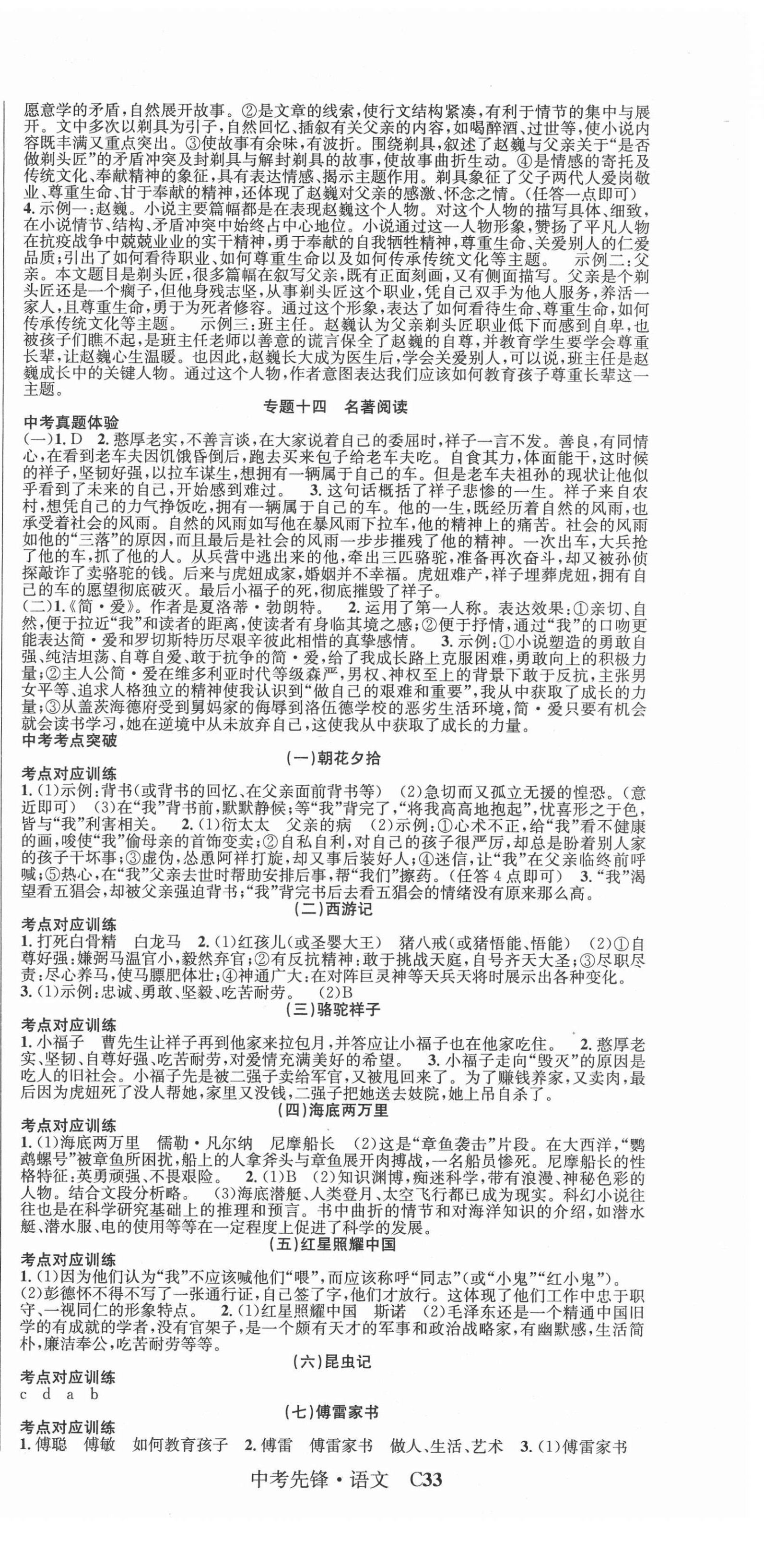 注:目前有些书本章节名称可能整理的还不是很完善,但都是按照顺序排列的,请同学们按照顺序仔细查找。练习册 2021年中考先锋语文人教版黄石专版 答案主要是用来给同学们做完题方便对答案用的,请勿直接抄袭。