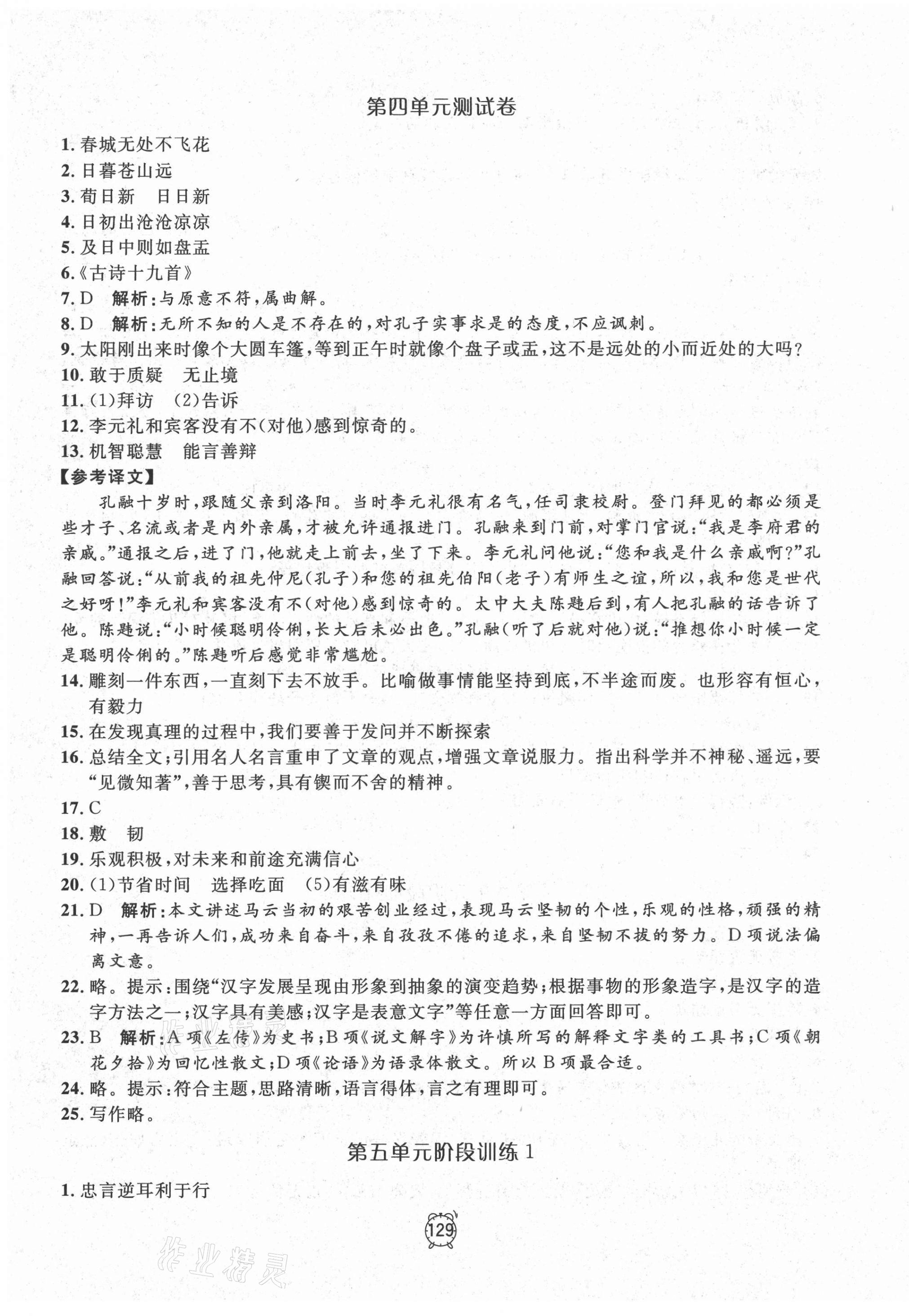 注:目前有些书本章节名称可能整理的还不是很完善,但都是按照顺序排列的,请同学们按照顺序仔细查找。练习册 2021年钟书金牌金试卷六年级语文下册人教版54制 答案主要是用来给同学们做完题方便对答案用的,请勿直接抄袭。