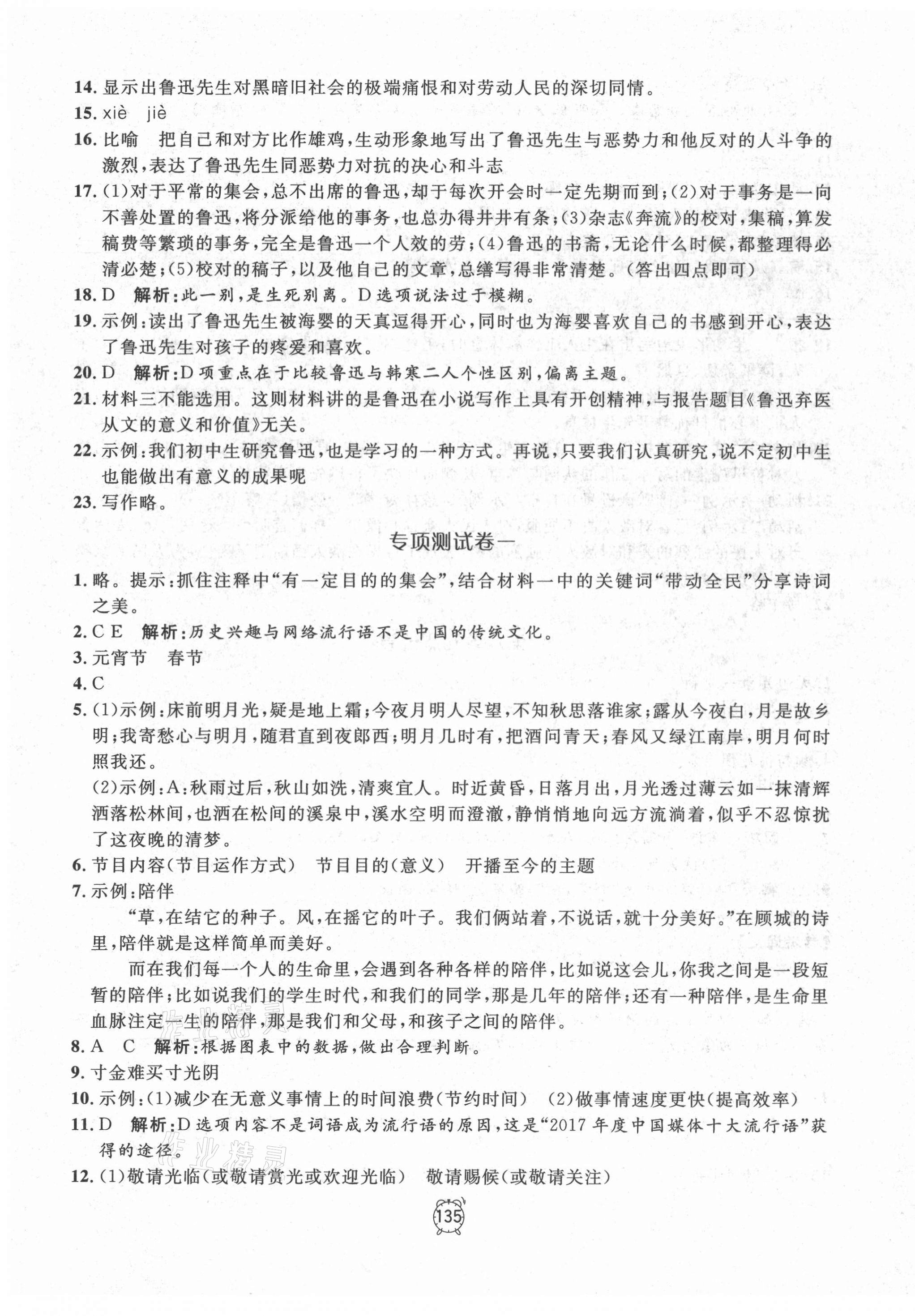 注:目前有些书本章节名称可能整理的还不是很完善,但都是按照顺序排列的,请同学们按照顺序仔细查找。练习册 2021年钟书金牌金试卷六年级语文下册人教版54制 答案主要是用来给同学们做完题方便对答案用的,请勿直接抄袭。