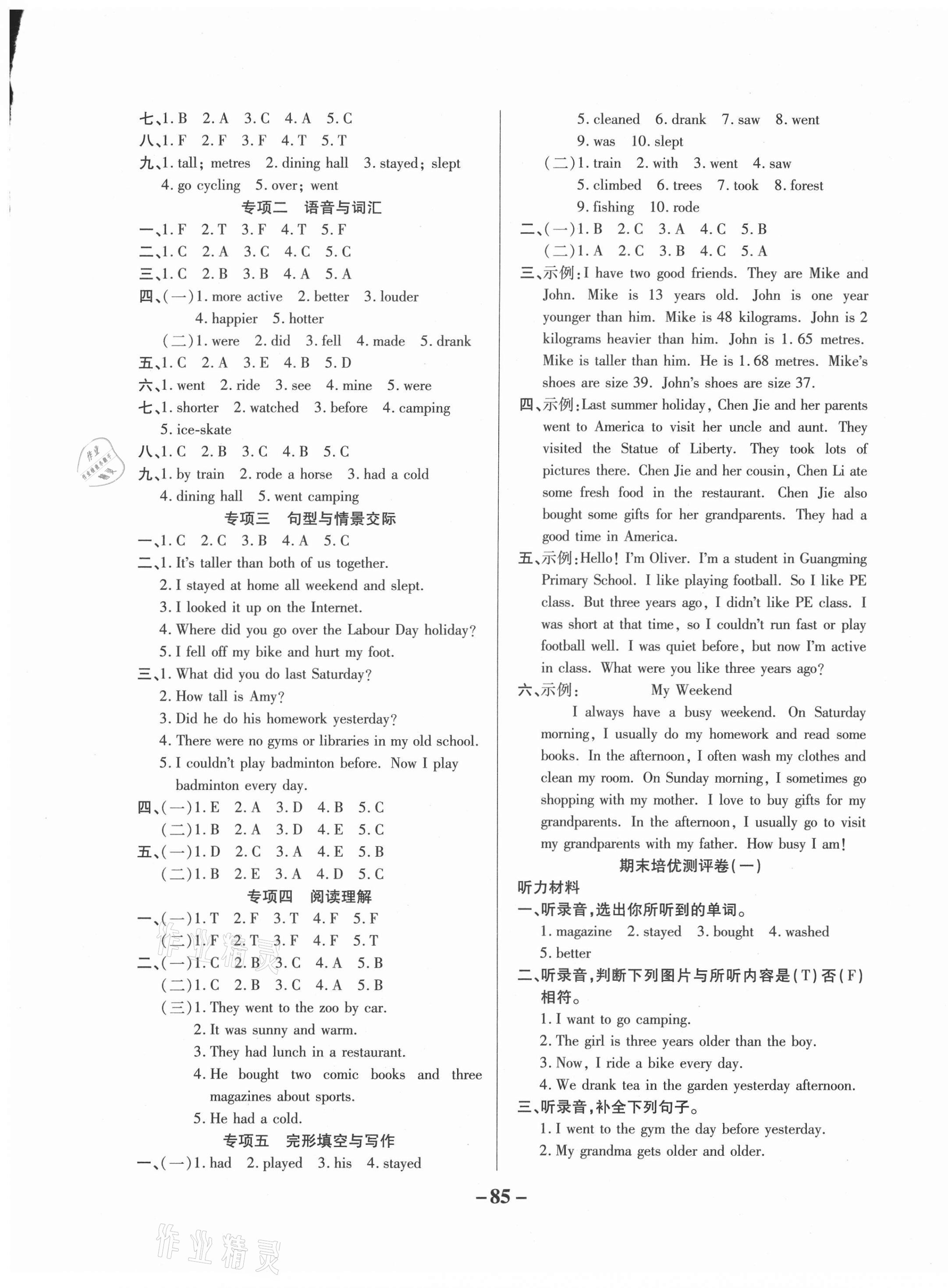 注:目前有些书本章节名称可能整理的还不是很完善,但都是按照顺序排列的,请同学们按照顺序仔细查找。练习册 2021年培优名卷六年级英语下册人教版A版 答案主要是用来给同学们做完题方便对答案用的,请勿直接抄袭。