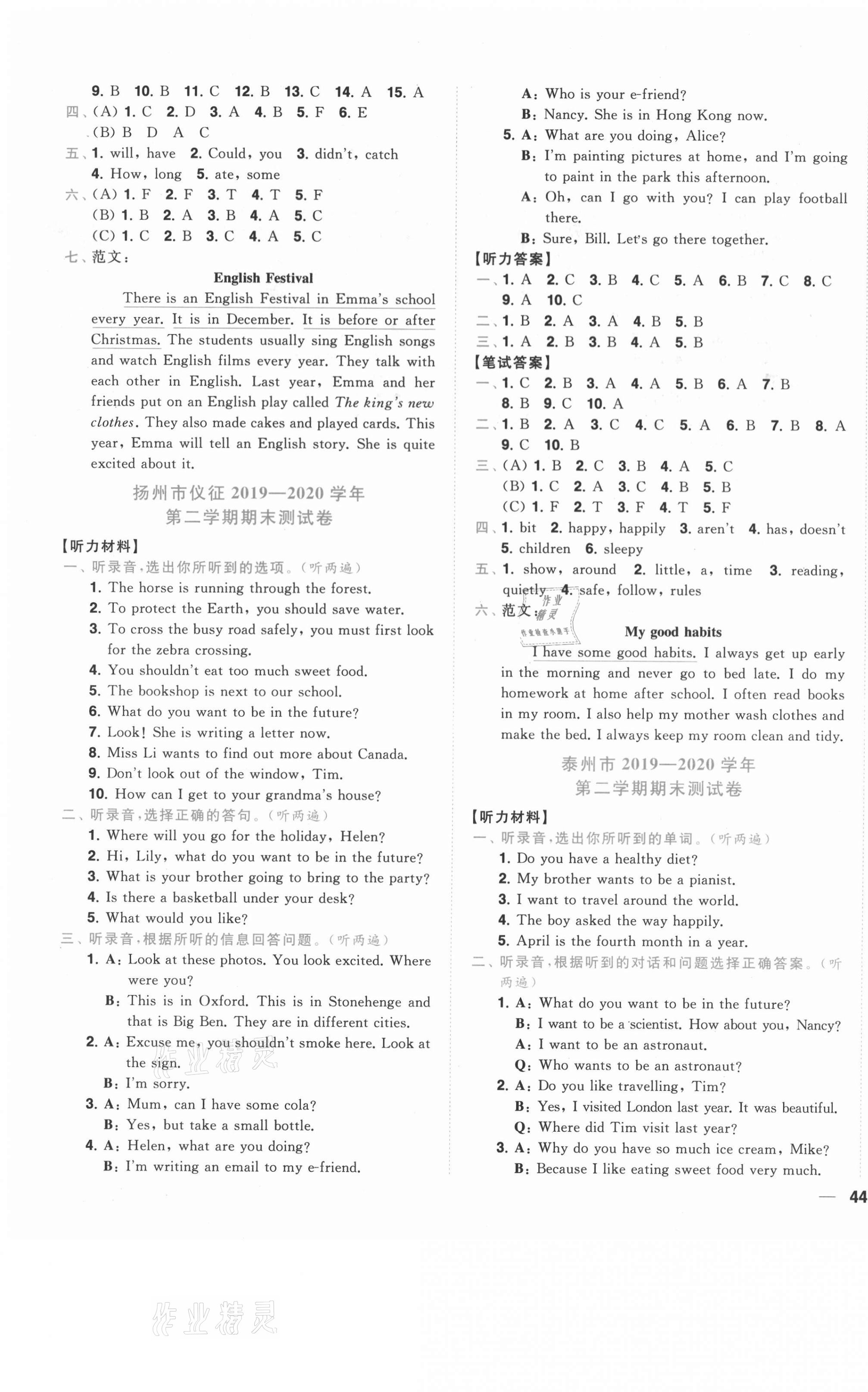 注:目前有些书本章节名称可能整理的还不是很完善,但都是按照顺序排列的,请同学们按照顺序仔细查找。练习册 2021年小天才期末复习与13市试卷优选六年级英语下册江苏版 答案主要是用来给同学们做完题方便对答案用的,请勿直接抄袭。
