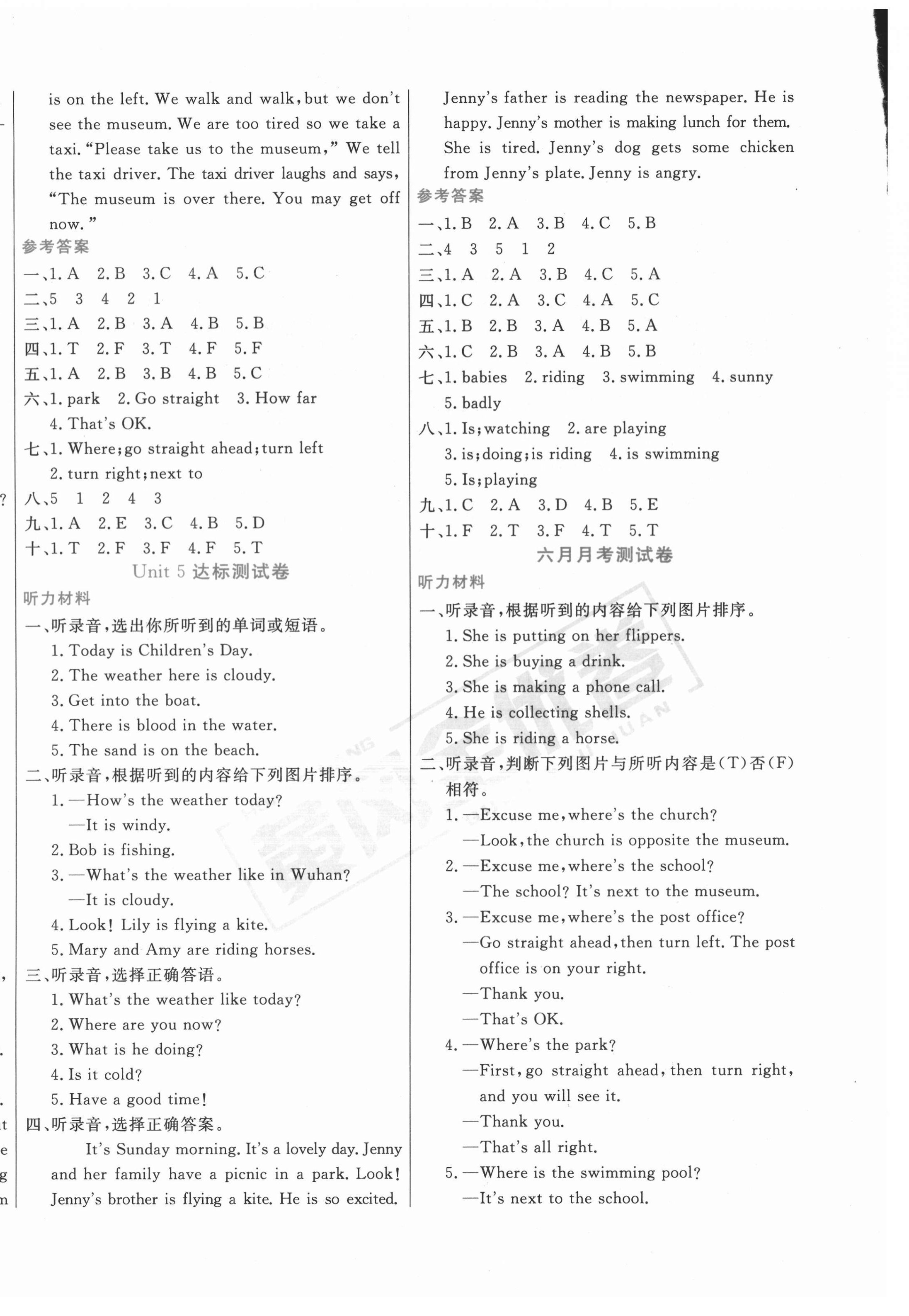 注:目前有些书本章节名称可能整理的还不是很完善,但都是按照顺序排列的,请同学们按照顺序仔细查找。练习册 2021年黄冈全优卷五年级英语下册剑桥版 答案主要是用来给同学们做完题方便对答案用的,请勿直接抄袭。