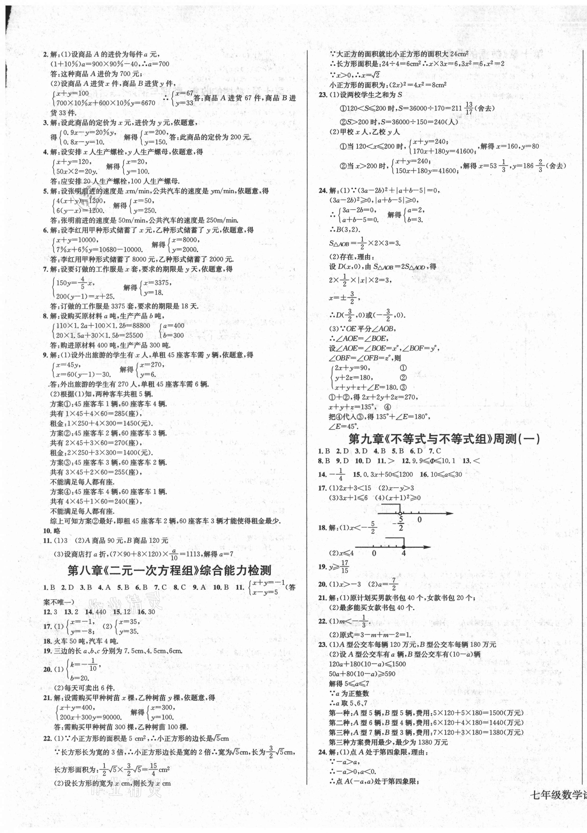 注:目前有些书本章节名称可能整理的还不是很完善,但都是按照顺序排列的,请同学们按照顺序仔细查找。练习册 2021年思维新观察同步检测金卷七年级数学下册人教版 答案主要是用来给同学们做完题方便对答案用的,请勿直接抄袭。