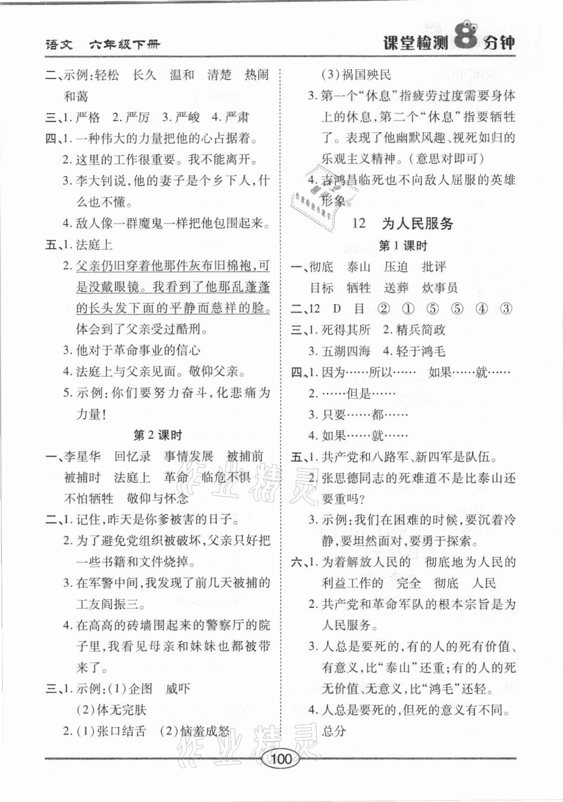 注:目前有些书本章节名称可能整理的还不是很完善,但都是按照顺序排列的,请同学们按照顺序仔细查找。练习册 2021年课堂检测8分钟六年级语文下册人教版 答案主要是用来给同学们做完题方便对答案用的,请勿直接抄袭。
