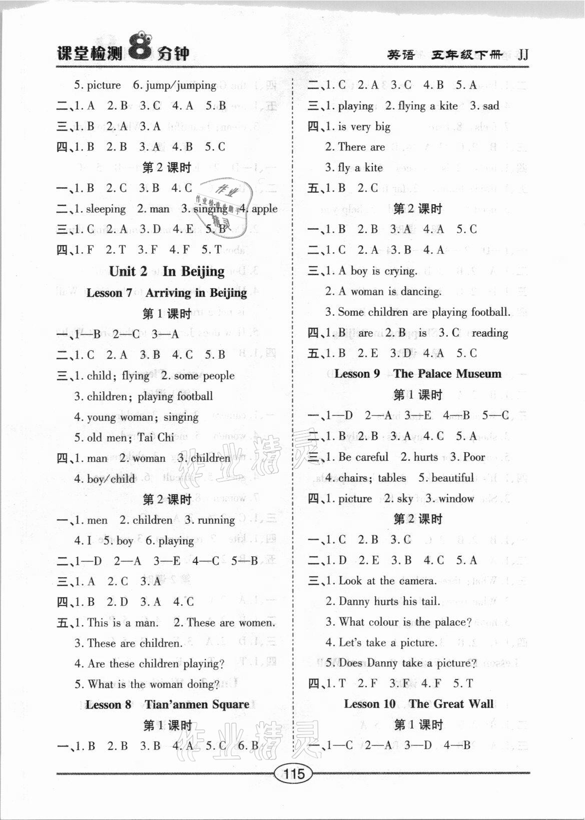 注:目前有些书本章节名称可能整理的还不是很完善,但都是按照顺序排列的,请同学们按照顺序仔细查找。练习册 2021年课堂检测8分钟五年级英语下册冀教版 答案主要是用来给同学们做完题方便对答案用的,请勿直接抄袭。