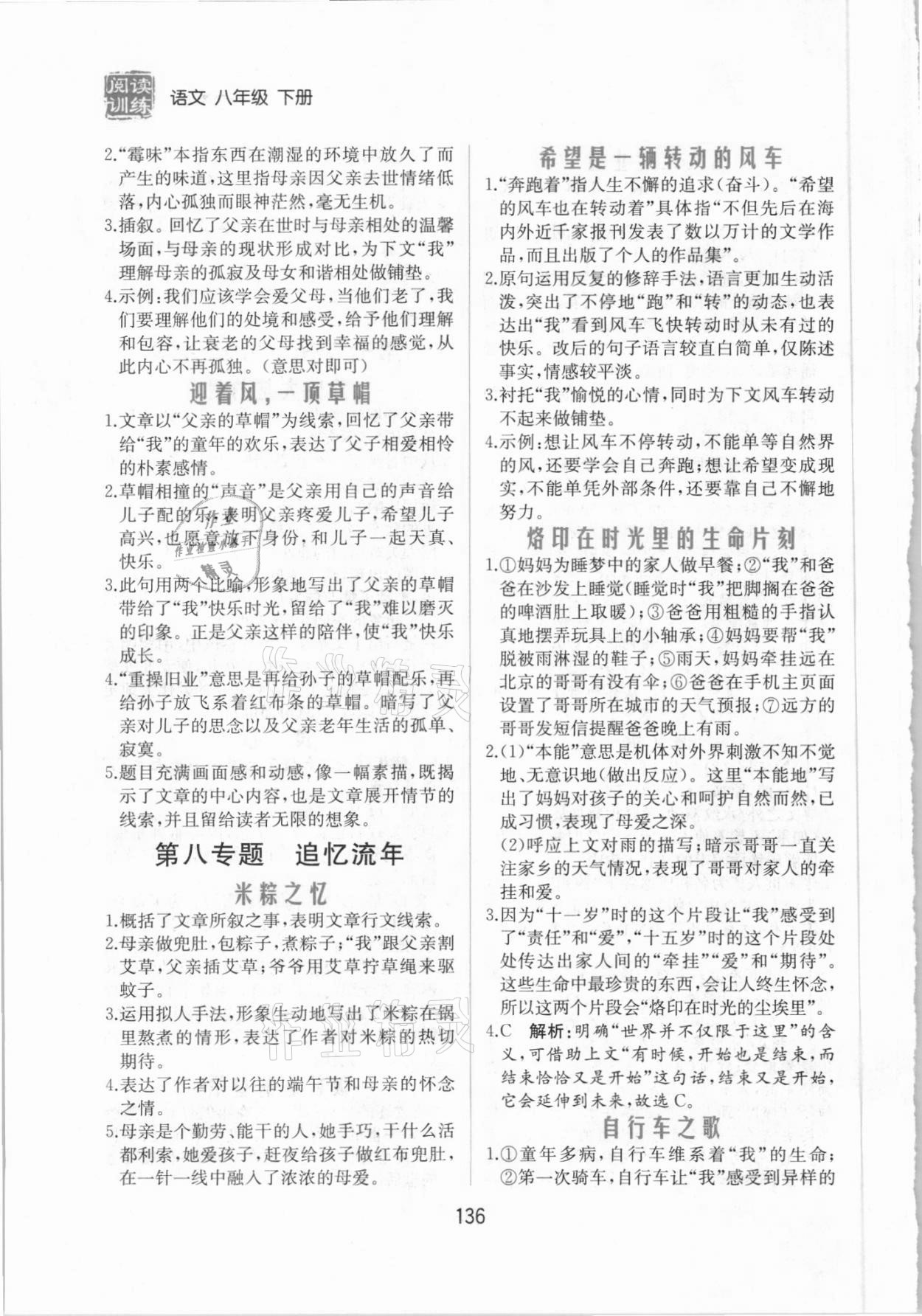 注:目前有些书本章节名称可能整理的还不是很完善,但都是按照顺序排列的,请同学们按照顺序仔细查找。练习册 2021年语文阅读训练八年级下册人教版 答案主要是用来给同学们做完题方便对答案用的,请勿直接抄袭。