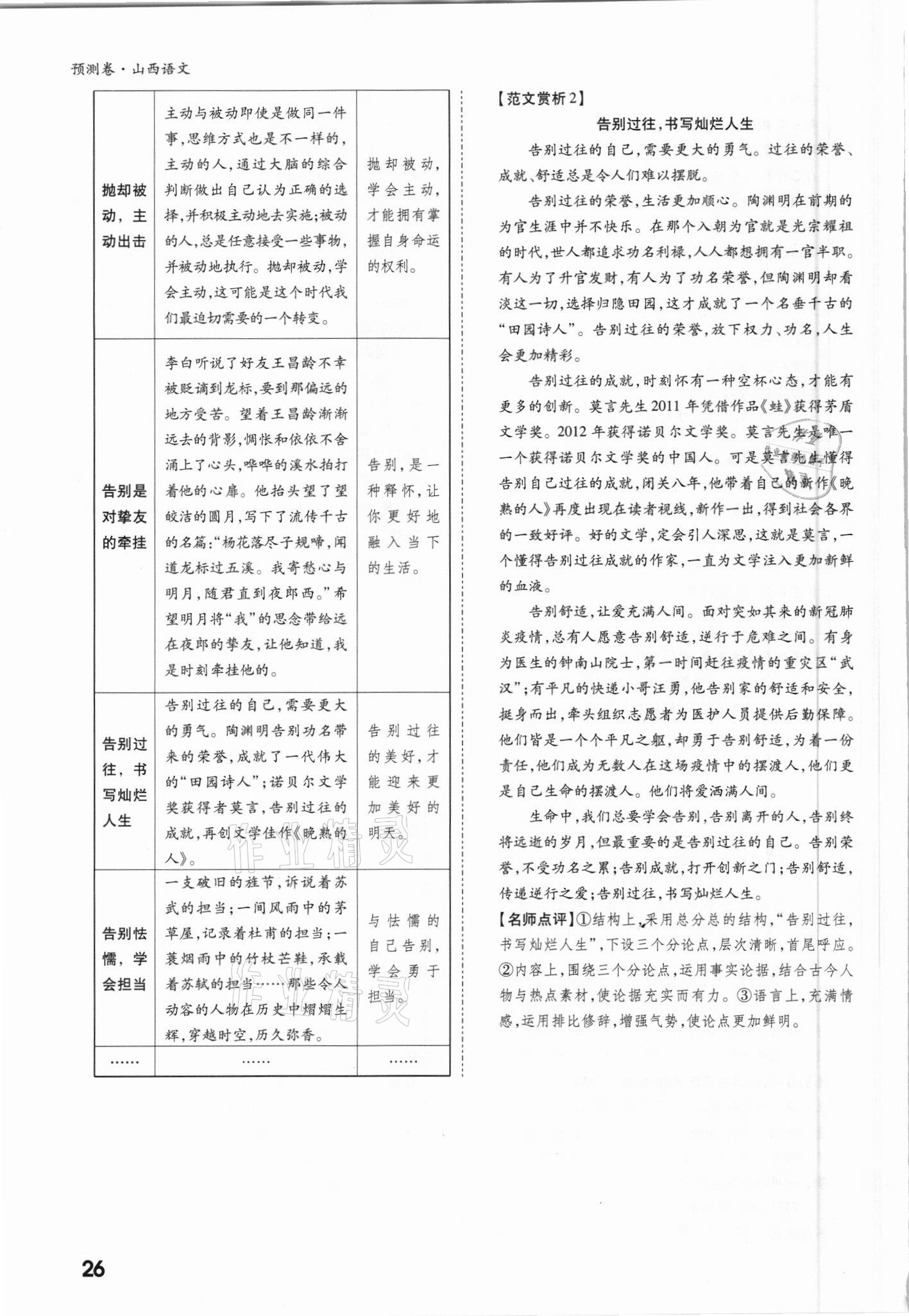 2021年万唯中考预测卷语文山西专版