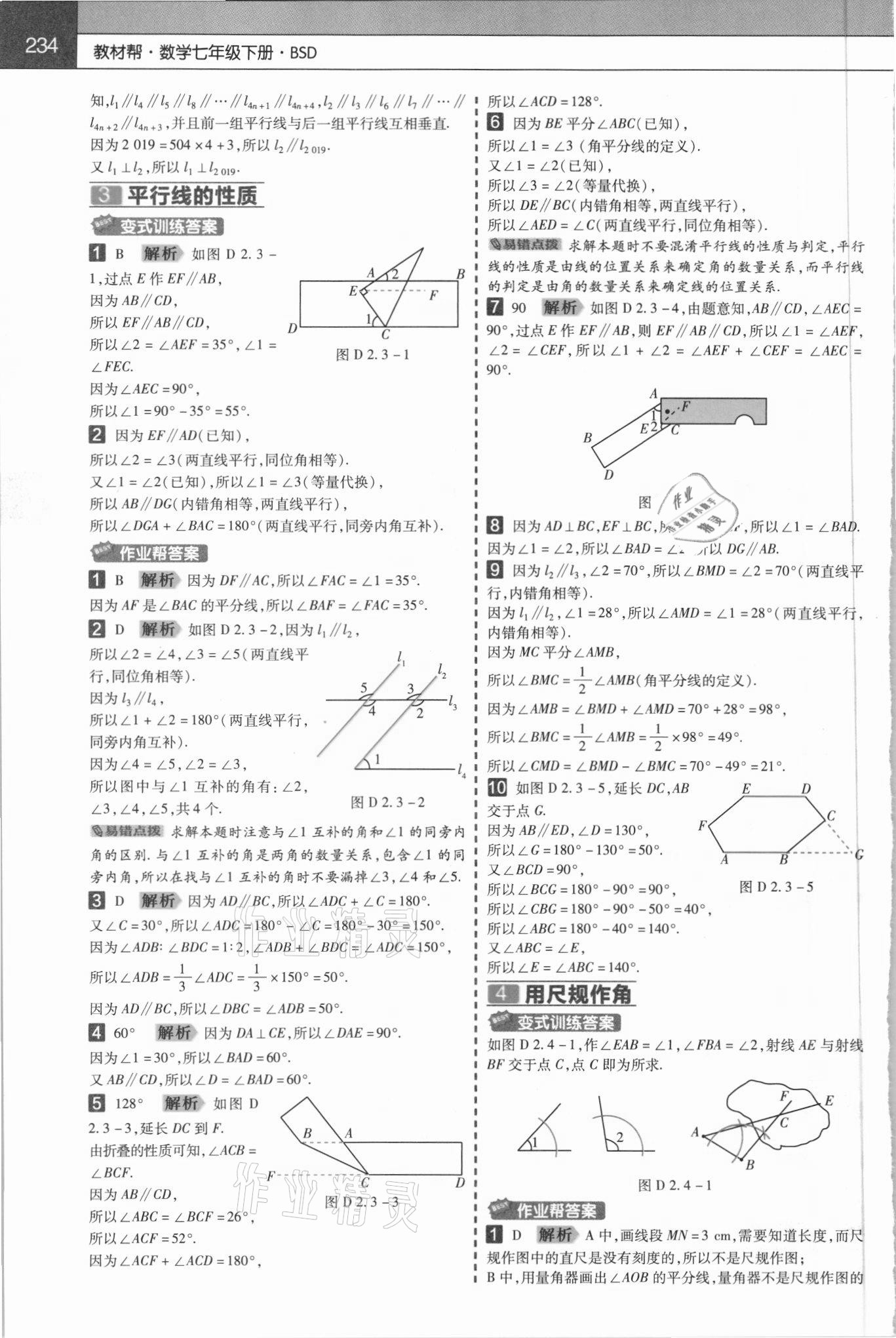 注:目前有些书本章节名称可能整理的还不是很完善,但都是按照顺序排列的,请同学们按照顺序仔细查找。练习册 2021年教材帮初中数学七年级下册北师大版 答案主要是用来给同学们做完题方便对答案用的,请勿直接抄袭。