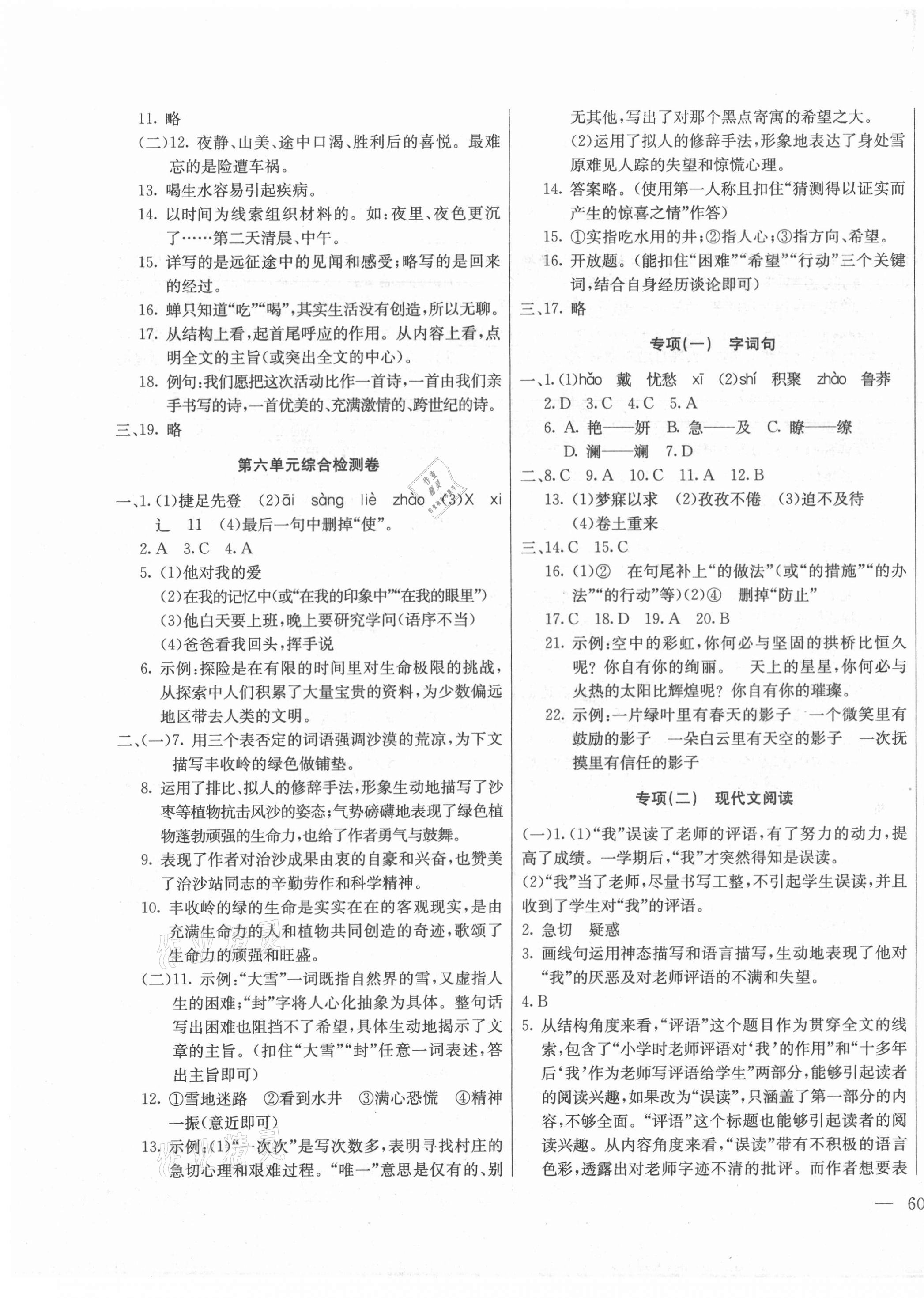 注:目前有些书本章节名称可能整理的还不是很完善,但都是按照顺序排列的,请同学们按照顺序仔细查找。练习册 2021年同步检测卷七年级语文下册人教版 答案主要是用来给同学们做完题方便对答案用的,请勿直接抄袭。