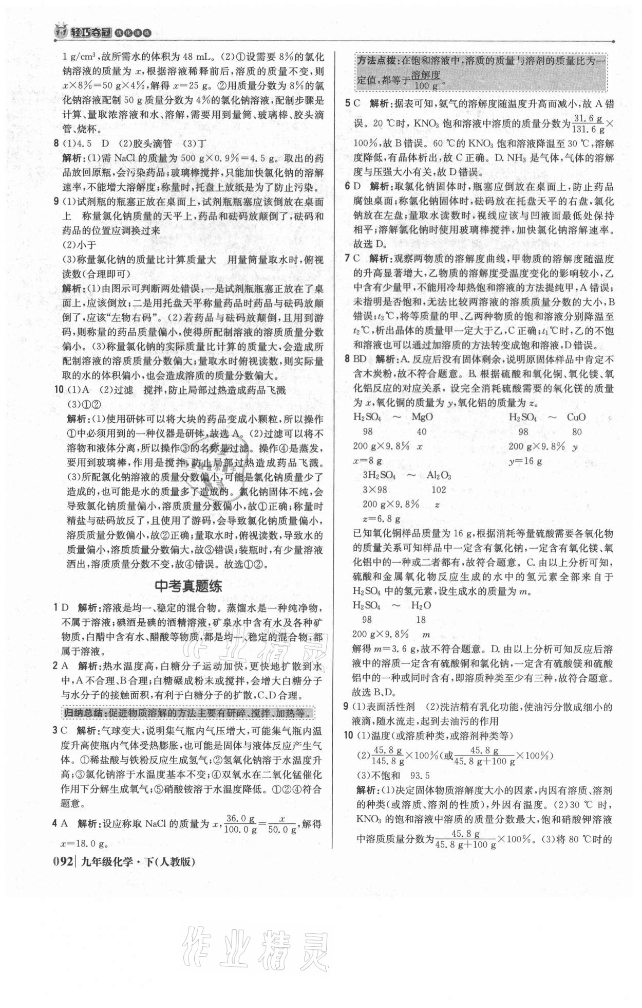 注:目前有些书本章节名称可能整理的还不是很完善,但都是按照顺序排列的,请同学们按照顺序仔细查找。练习册 2021年1加1轻巧夺冠优化训练九年级化学下册人教版双色提升版 答案主要是用来给同学们做完题方便对答案用的,请勿直接抄袭。