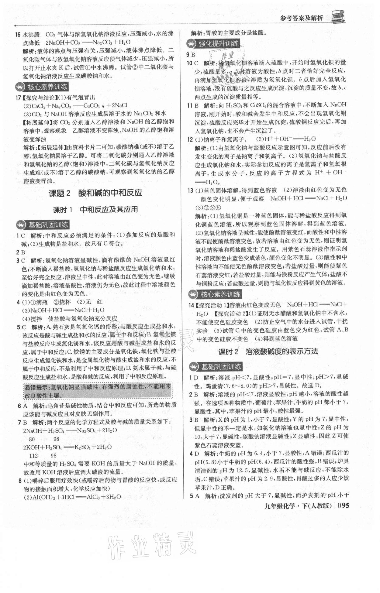 注:目前有些书本章节名称可能整理的还不是很完善,但都是按照顺序排列的,请同学们按照顺序仔细查找。练习册 2021年1加1轻巧夺冠优化训练九年级化学下册人教版双色提升版 答案主要是用来给同学们做完题方便对答案用的,请勿直接抄袭。
