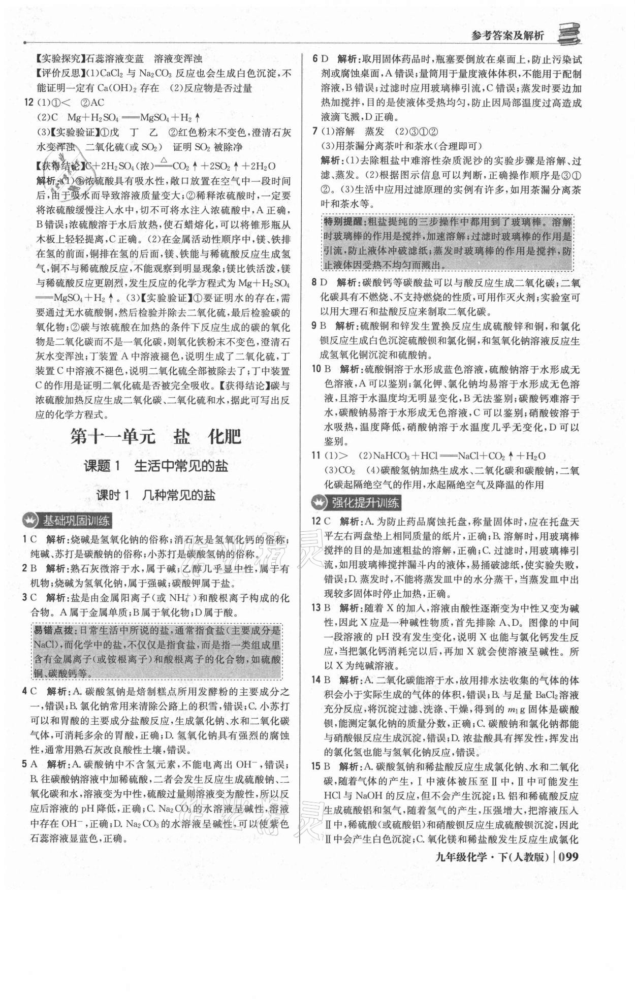 注:目前有些书本章节名称可能整理的还不是很完善,但都是按照顺序排列的,请同学们按照顺序仔细查找。练习册 2021年1加1轻巧夺冠优化训练九年级化学下册人教版双色提升版 答案主要是用来给同学们做完题方便对答案用的,请勿直接抄袭。