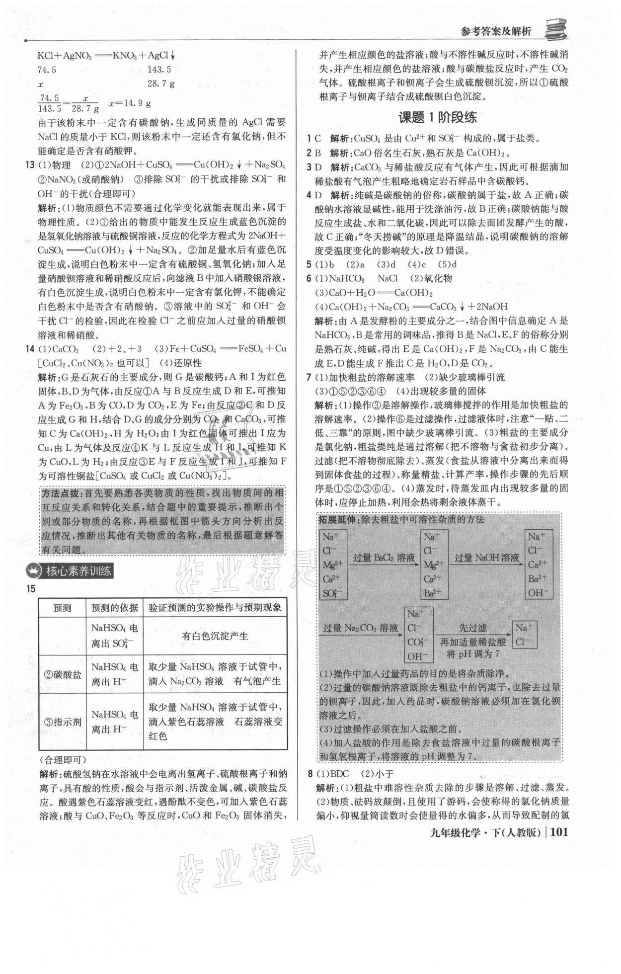 注:目前有些书本章节名称可能整理的还不是很完善,但都是按照顺序排列的,请同学们按照顺序仔细查找。练习册 2021年1加1轻巧夺冠优化训练九年级化学下册人教版双色提升版 答案主要是用来给同学们做完题方便对答案用的,请勿直接抄袭。
