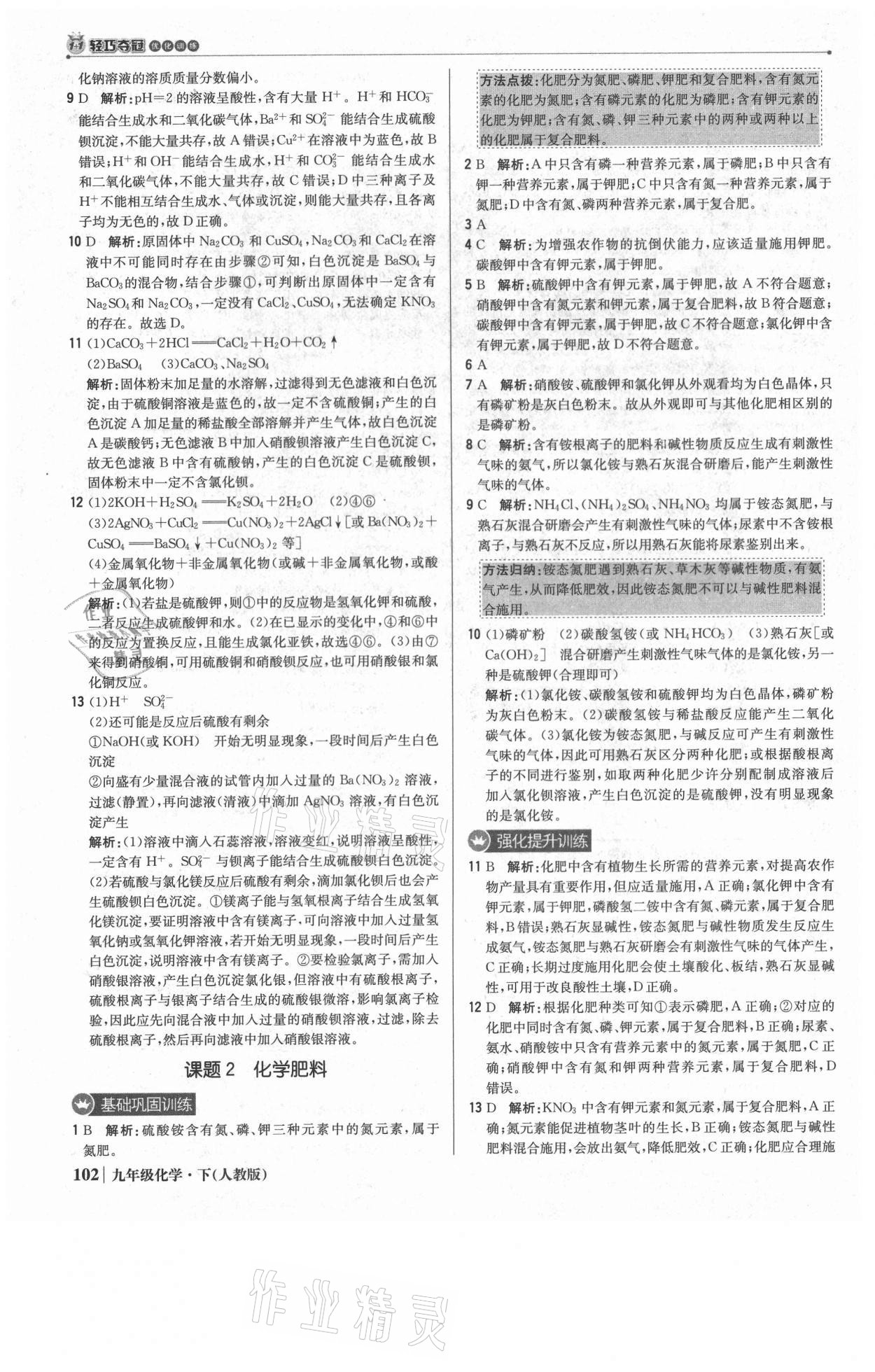 注:目前有些书本章节名称可能整理的还不是很完善,但都是按照顺序排列的,请同学们按照顺序仔细查找。练习册 2021年1加1轻巧夺冠优化训练九年级化学下册人教版双色提升版 答案主要是用来给同学们做完题方便对答案用的,请勿直接抄袭。