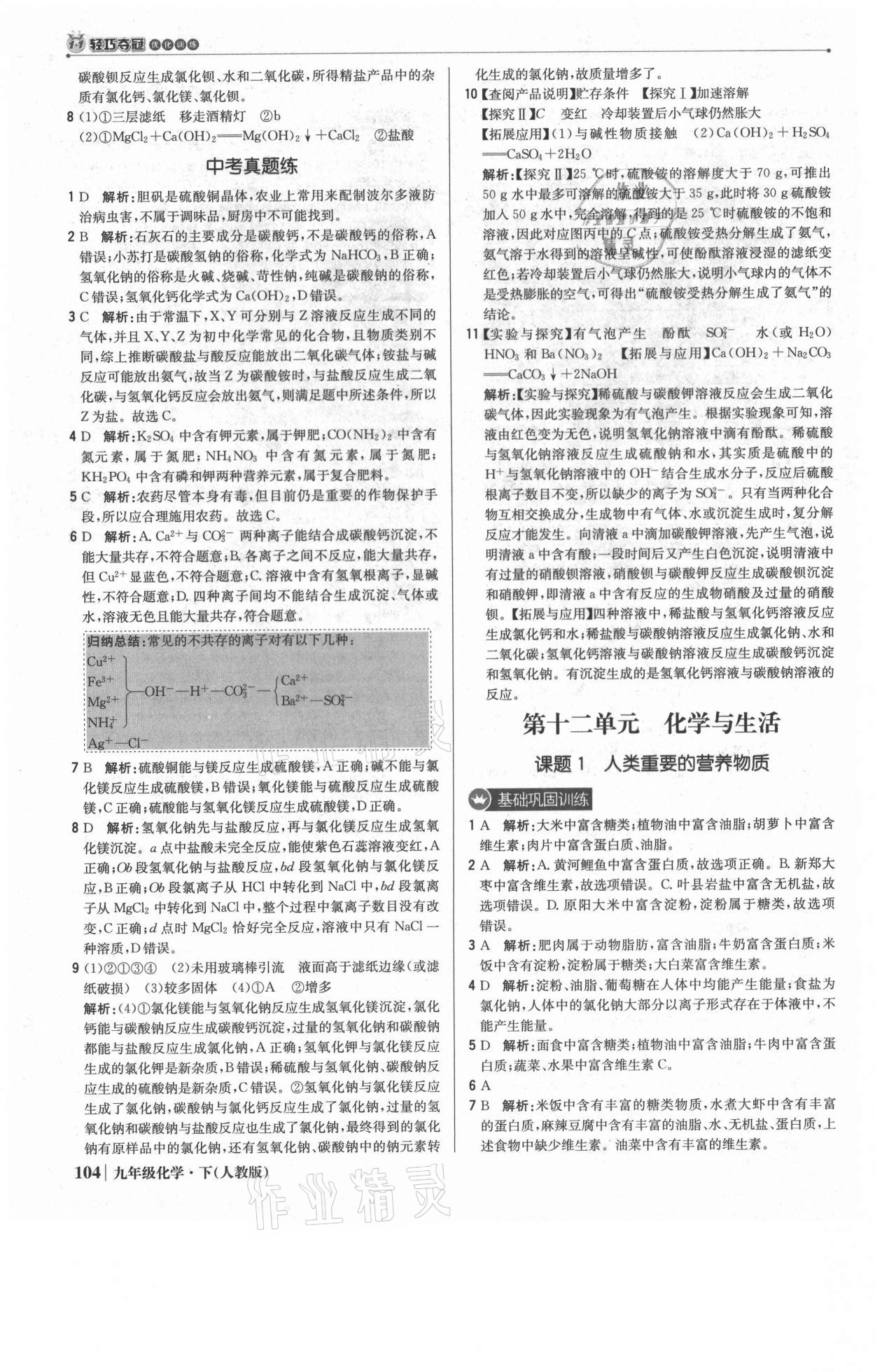 注:目前有些书本章节名称可能整理的还不是很完善,但都是按照顺序排列的,请同学们按照顺序仔细查找。练习册 2021年1加1轻巧夺冠优化训练九年级化学下册人教版双色提升版 答案主要是用来给同学们做完题方便对答案用的,请勿直接抄袭。