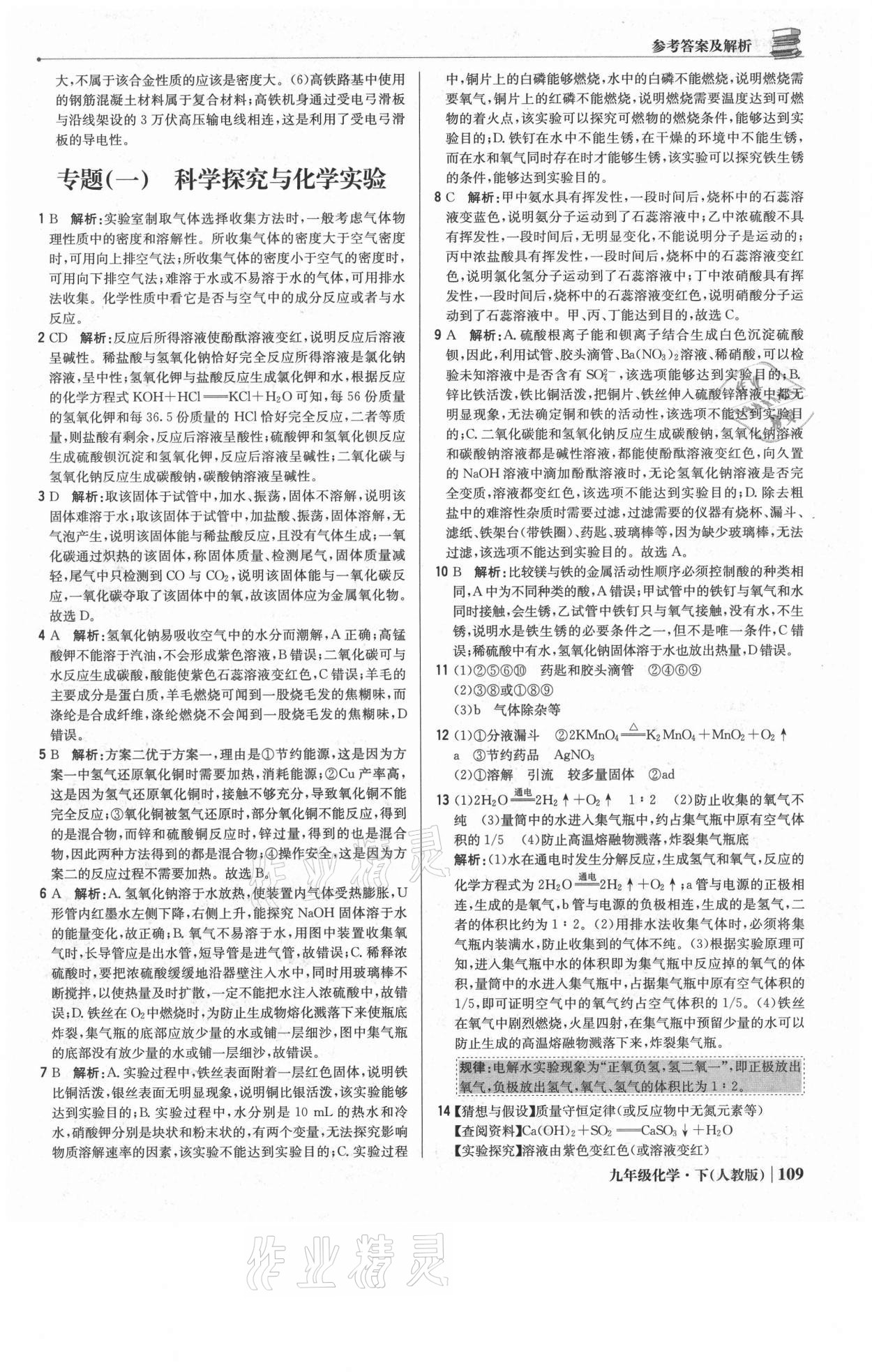 注:目前有些书本章节名称可能整理的还不是很完善,但都是按照顺序排列的,请同学们按照顺序仔细查找。练习册 2021年1加1轻巧夺冠优化训练九年级化学下册人教版双色提升版 答案主要是用来给同学们做完题方便对答案用的,请勿直接抄袭。