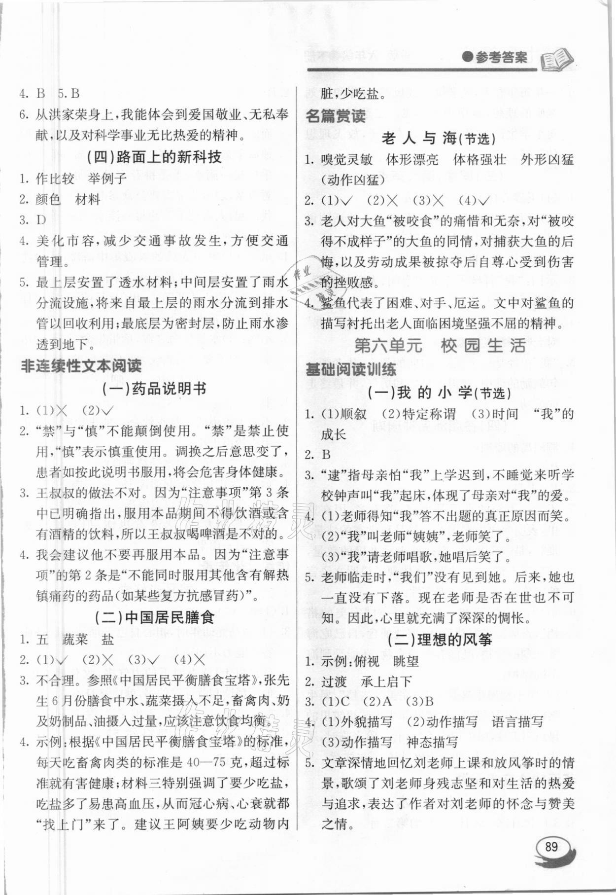 注:目前有些书本章节名称可能整理的还不是很完善,但都是按照顺序排列的,请同学们按照顺序仔细查找。练习册 2021年七彩阅读六年级下册人教版 答案主要是用来给同学们做完题方便对答案用的,请勿直接抄袭。