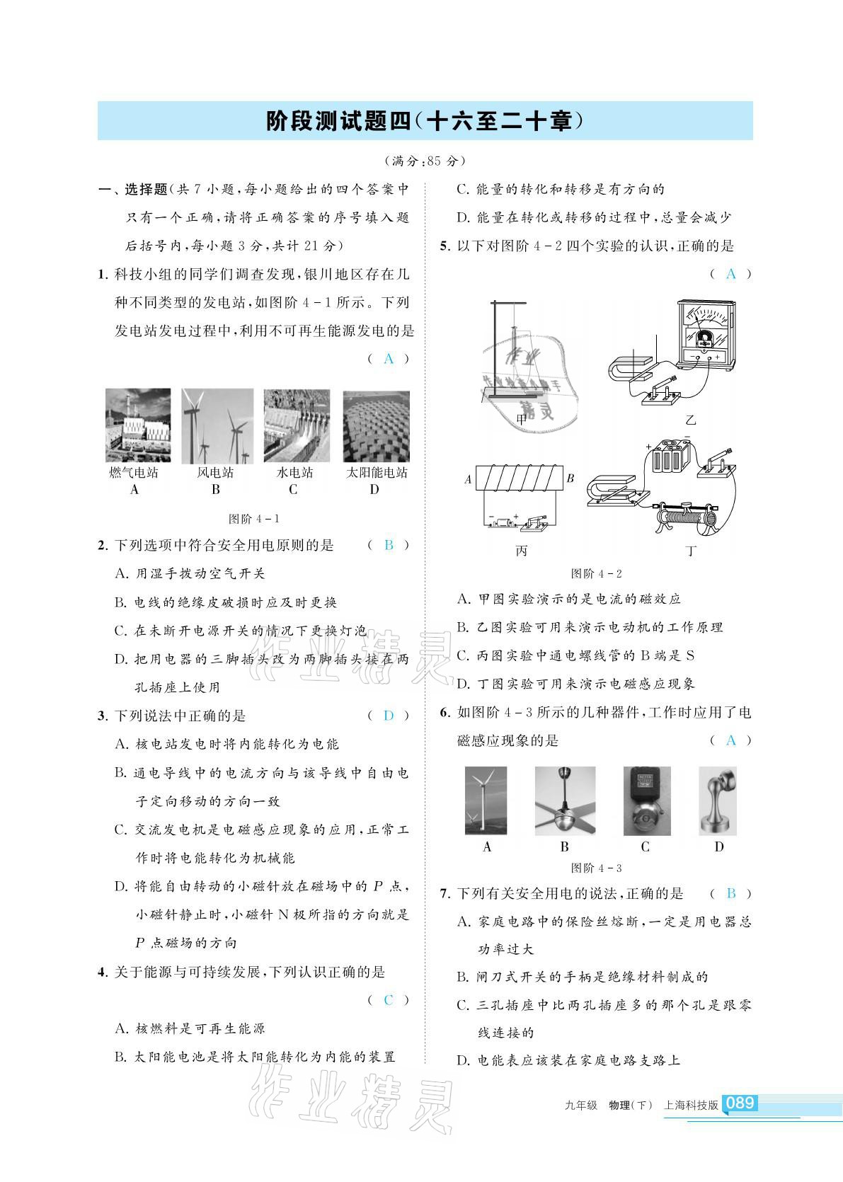 注:目前有些书本章节名称可能整理的还不是很完善,但都是按照顺序排列的,请同学们按照顺序仔细查找。练习册 2021年学习之友九年级物理下册沪科版 答案主要是用来给同学们做完题方便对答案用的,请勿直接抄袭。