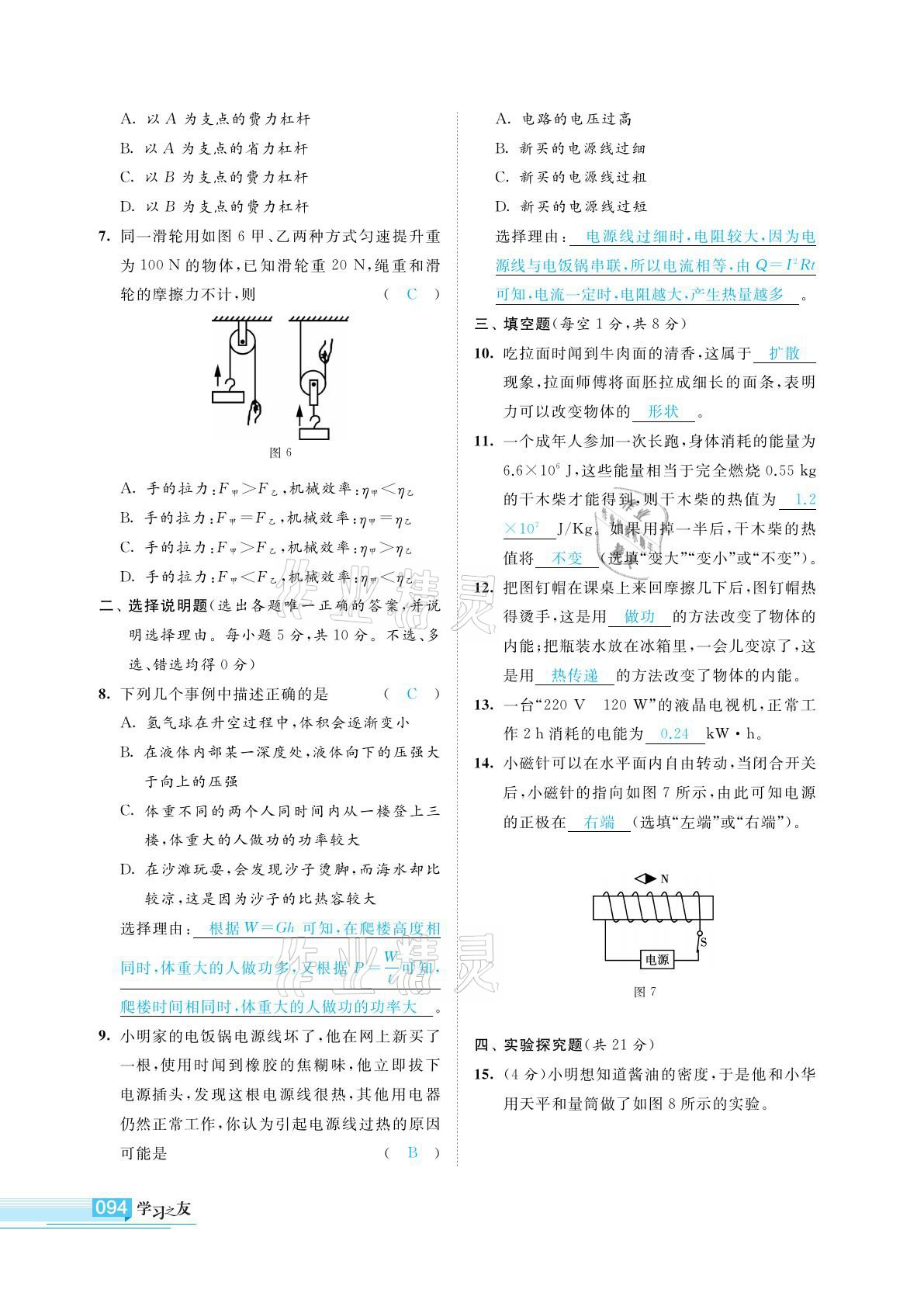 注:目前有些书本章节名称可能整理的还不是很完善,但都是按照顺序排列的,请同学们按照顺序仔细查找。练习册 2021年学习之友九年级物理下册沪科版 答案主要是用来给同学们做完题方便对答案用的,请勿直接抄袭。