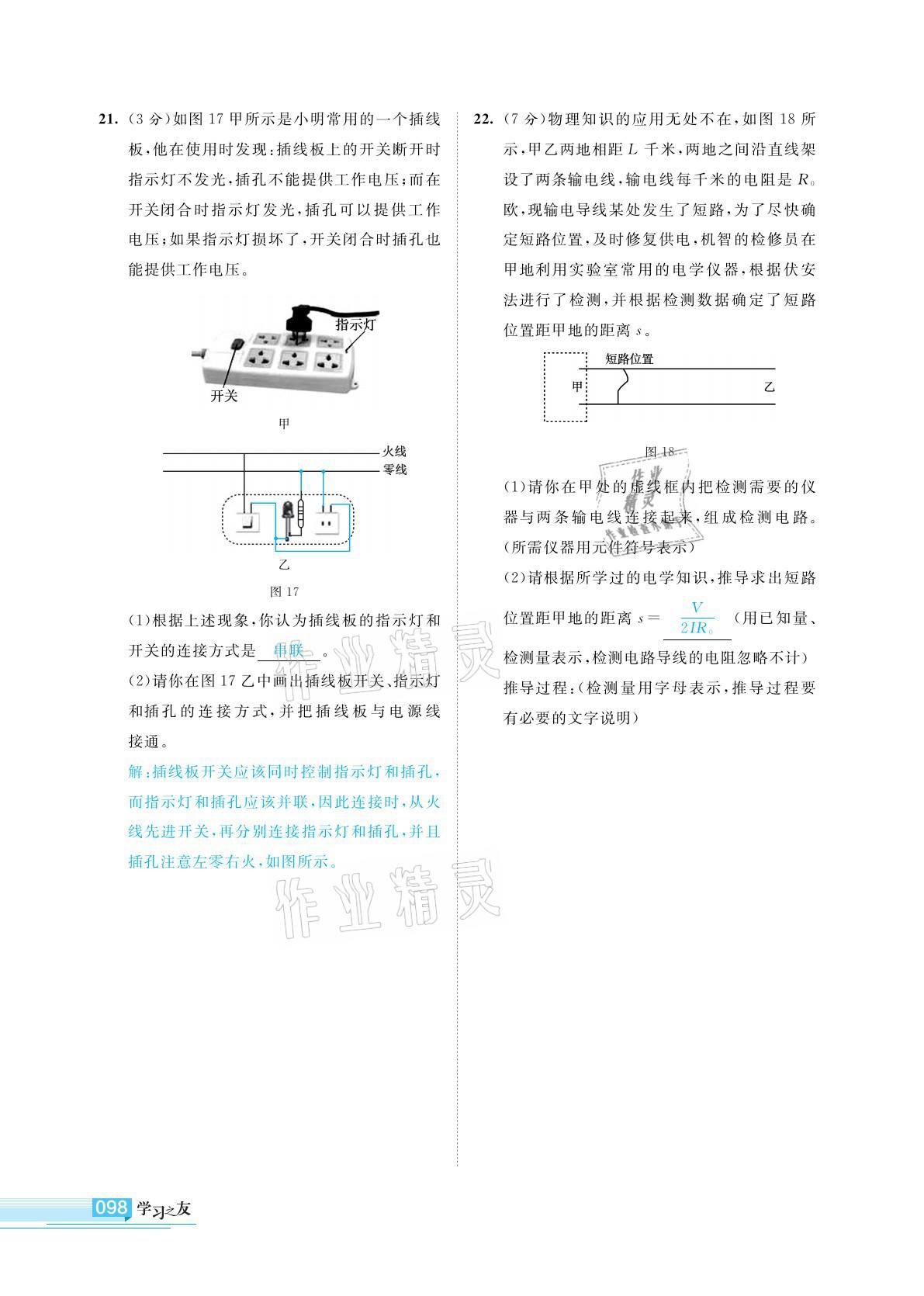 注:目前有些书本章节名称可能整理的还不是很完善,但都是按照顺序排列的,请同学们按照顺序仔细查找。练习册 2021年学习之友九年级物理下册沪科版 答案主要是用来给同学们做完题方便对答案用的,请勿直接抄袭。
