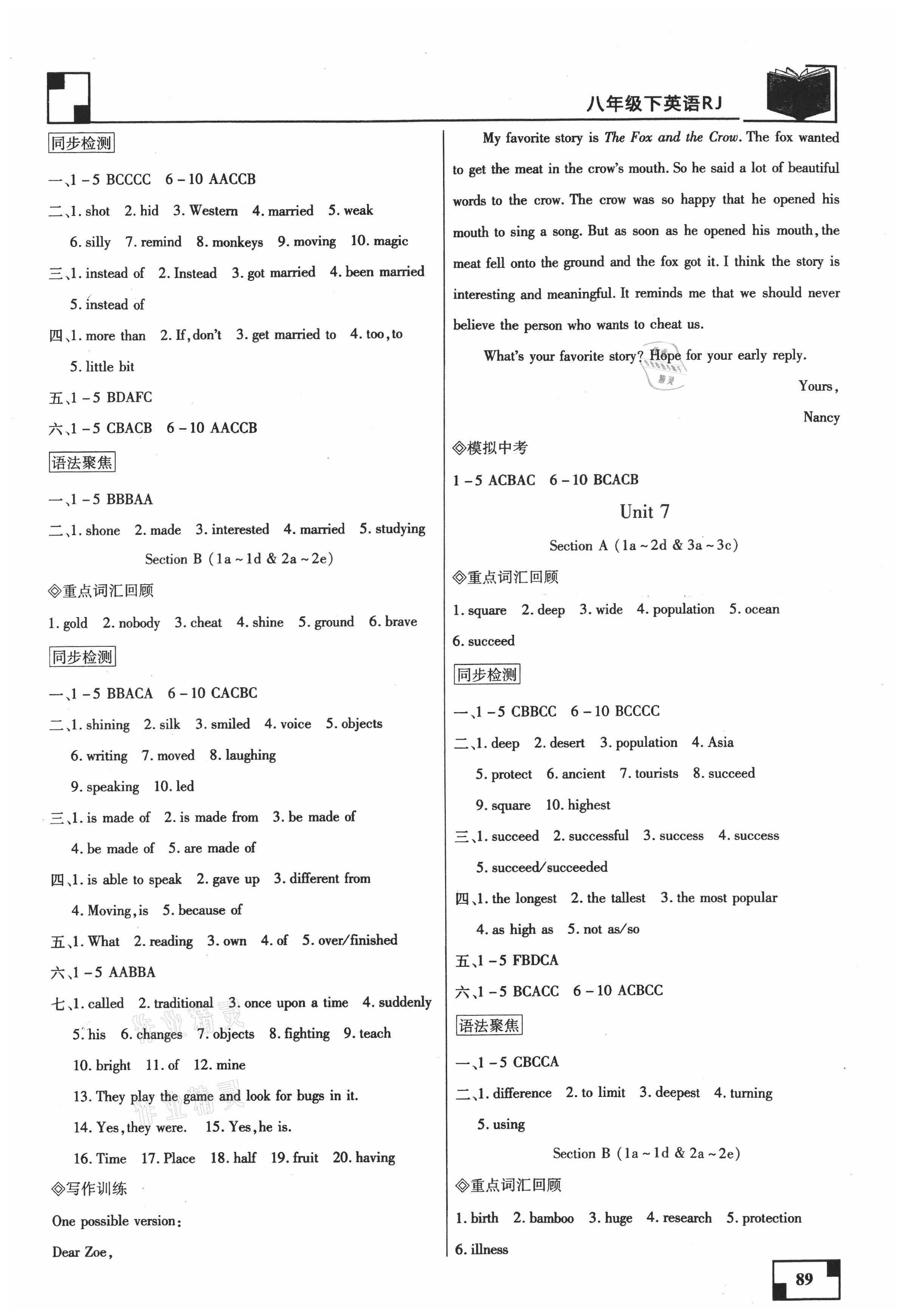 注:目前有些书本章节名称可能整理的还不是很完善,但都是按照顺序排列的,请同学们按照顺序仔细查找。练习册 2021年精点精练同步演练与跟踪测试八年级英语下册人教版 答案主要是用来给同学们做完题方便对答案用的,请勿直接抄袭。