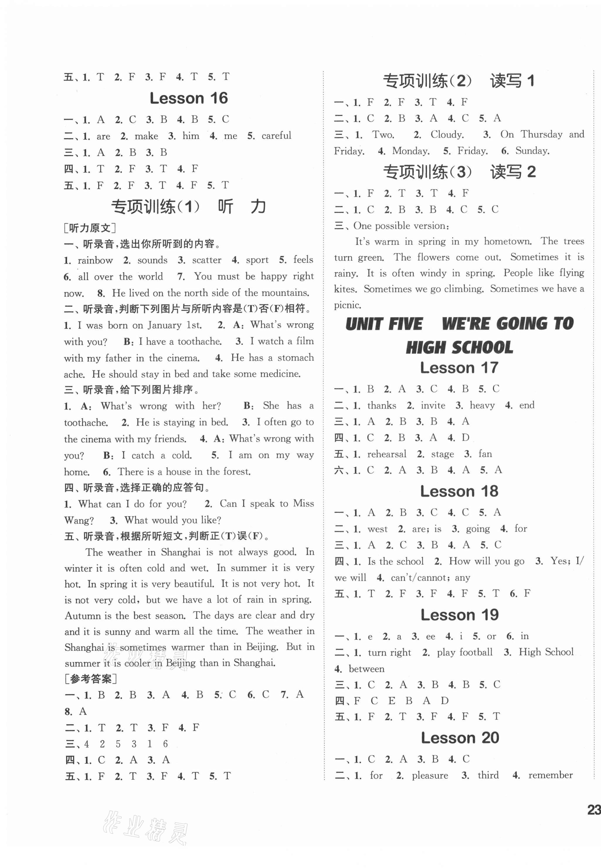 注:目前有些书本章节名称可能整理的还不是很完善,但都是按照顺序排列的,请同学们按照顺序仔细查找。练习册 2021年通城学典课时作业本六年级英语下册北京课改版 答案主要是用来给同学们做完题方便对答案用的,请勿直接抄袭。