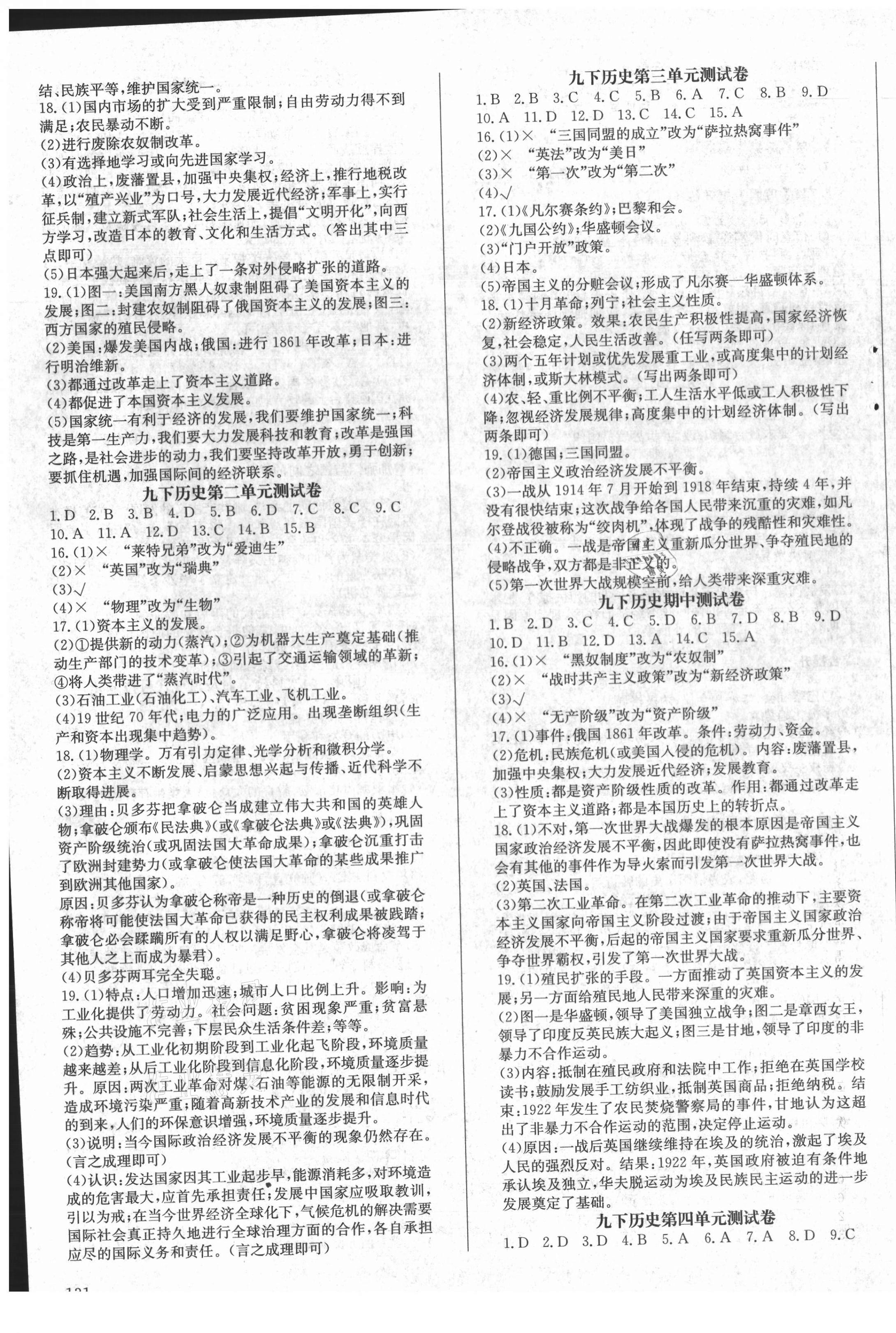 注:目前有些书本章节名称可能整理的还不是很完善,但都是按照顺序排列的,请同学们按照顺序仔细查找。练习册 2021年原创讲练测课优新突破九年级历史下册人教版 答案主要是用来给同学们做完题方便对答案用的,请勿直接抄袭。