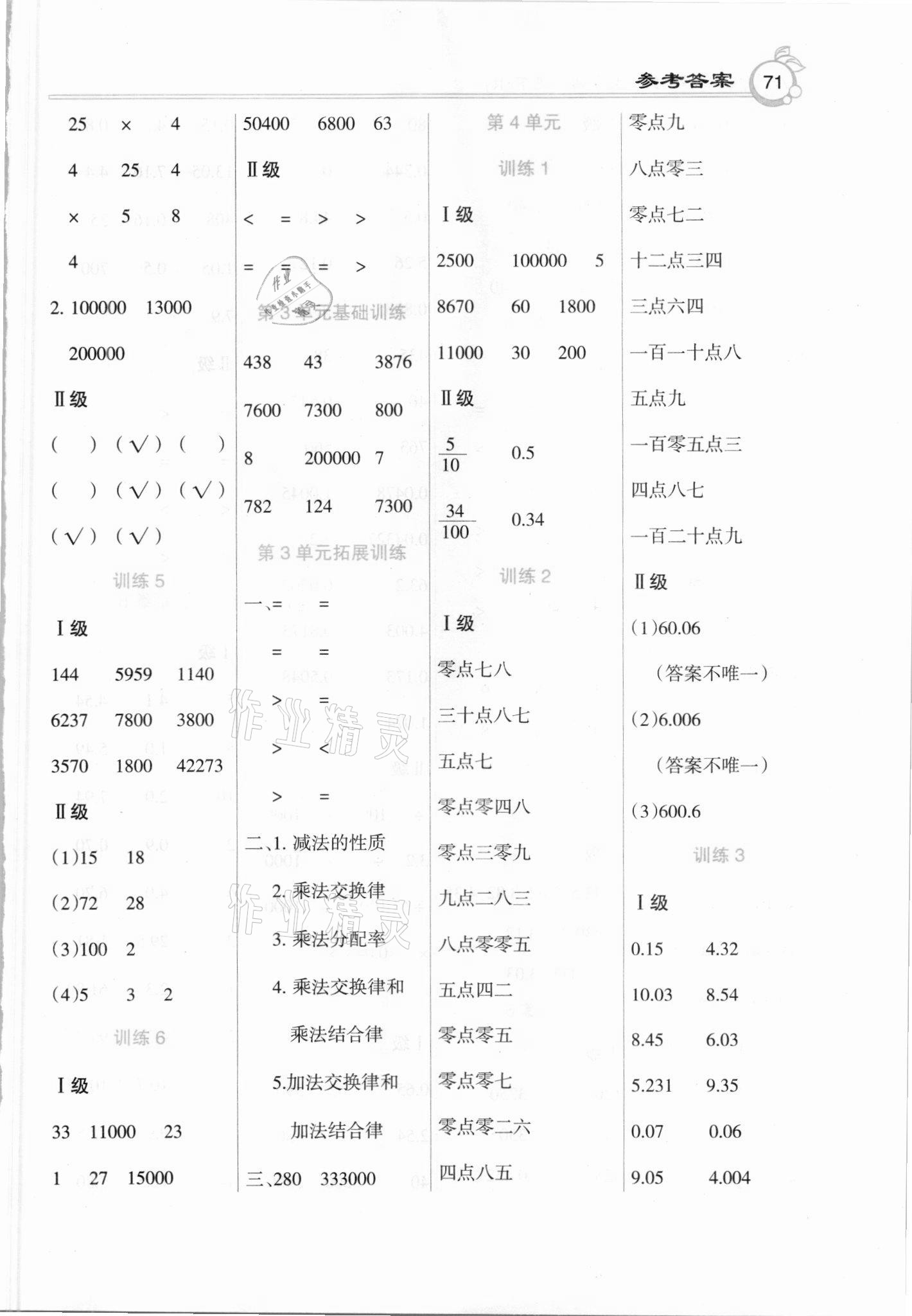注:目前有些书本章节名称可能整理的还不是很完善,但都是按照顺序排列的,请同学们按照顺序仔细查找。练习册 2021年A级口算数学四年级下册人教版 答案主要是用来给同学们做完题方便对答案用的,请勿直接抄袭。