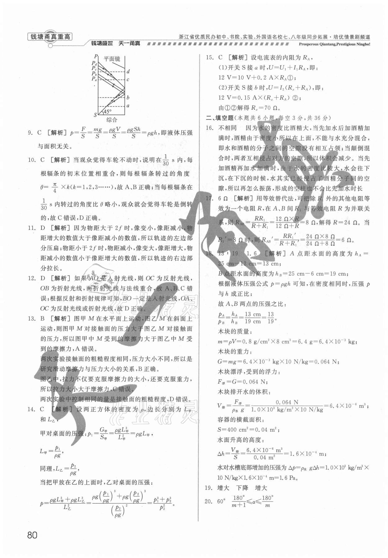 2021年钱塘甬真重高八年级科学全一册浙教版