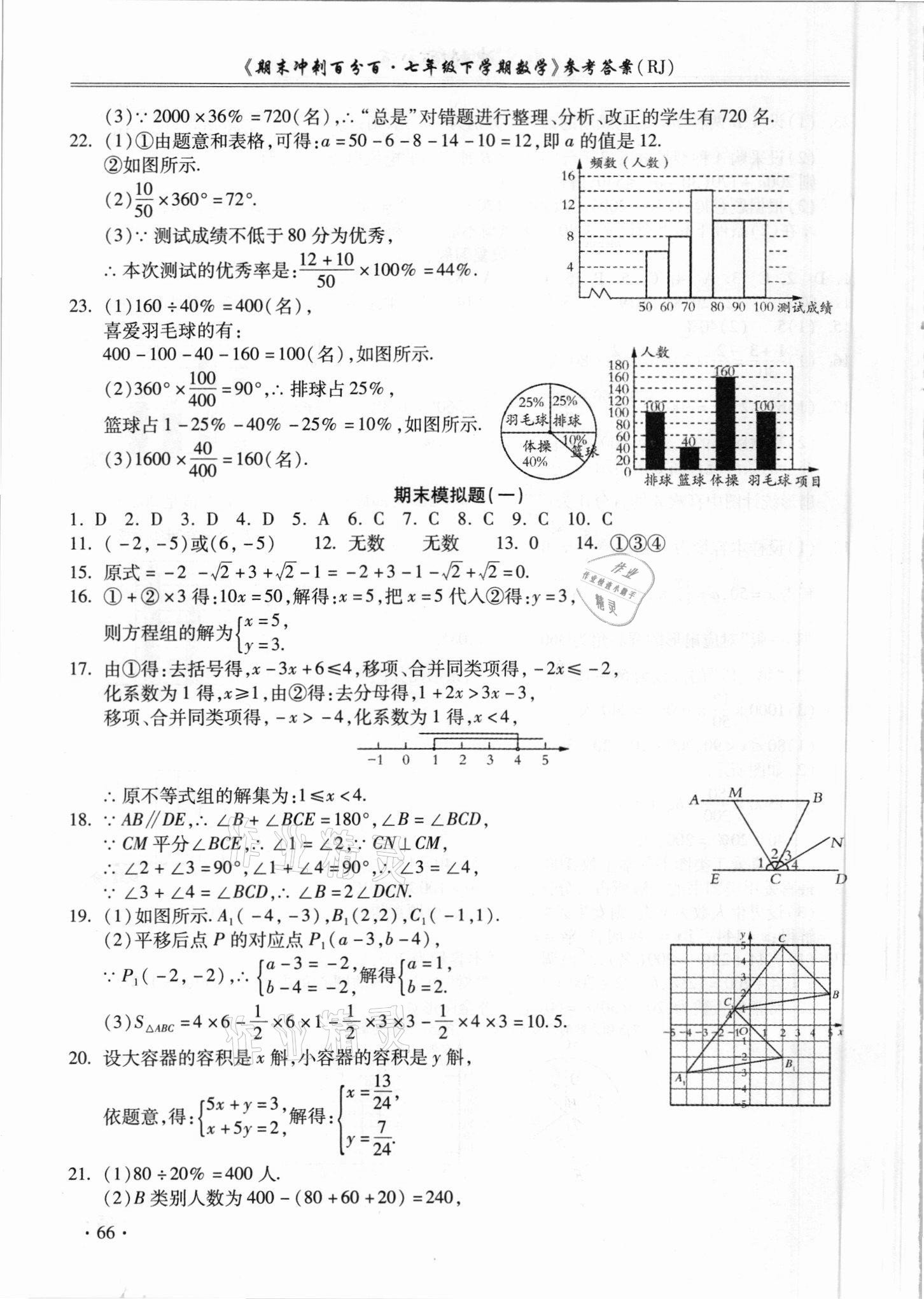 注:目前有些书本章节名称可能整理的还不是很完善,但都是按照顺序排列的,请同学们按照顺序仔细查找。练习册 2021年期末冲刺百分百七年级数学下册人教版 答案主要是用来给同学们做完题方便对答案用的,请勿直接抄袭。