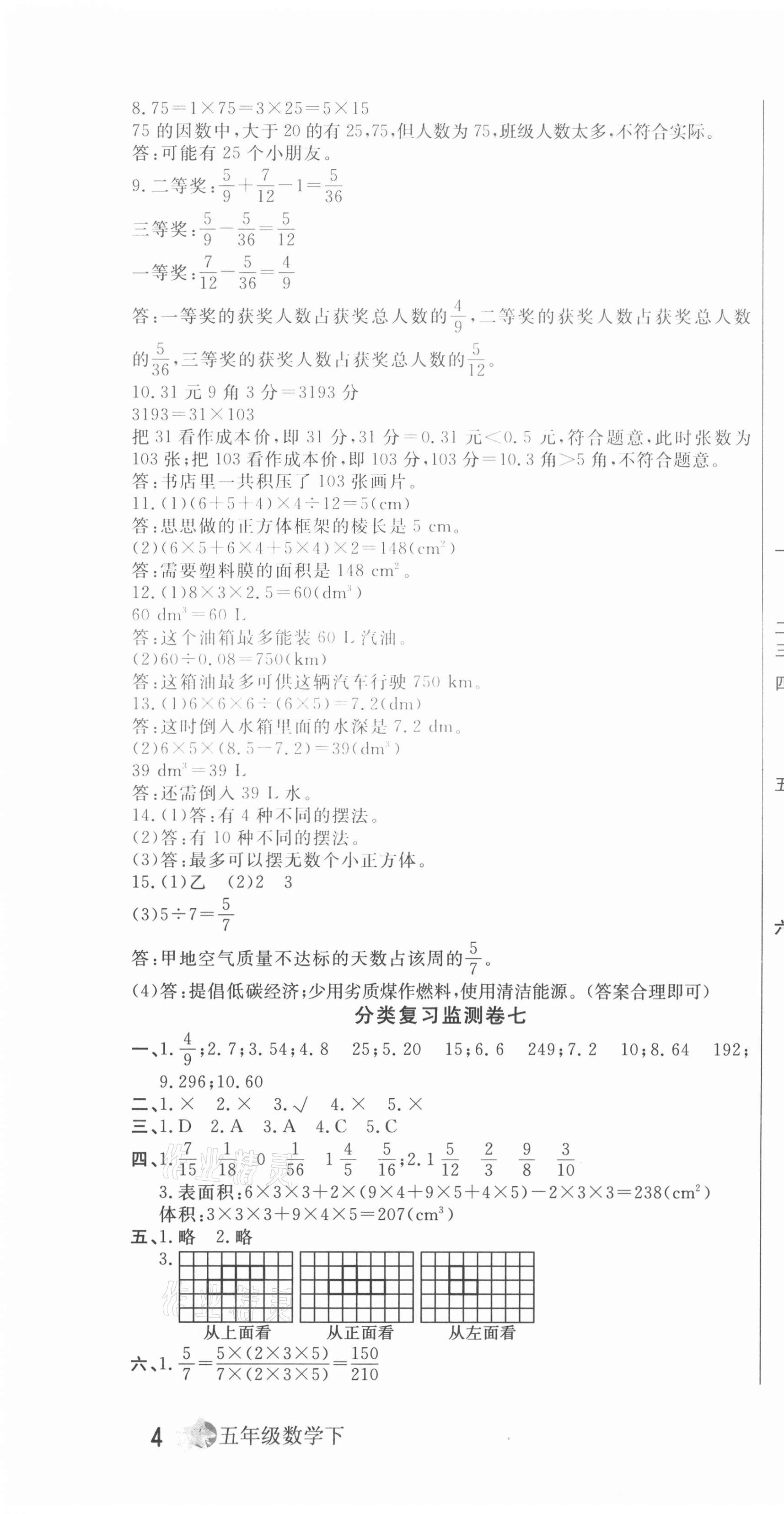 注:目前有些书本章节名称可能整理的还不是很完善,但都是按照顺序排列的,请同学们按照顺序仔细查找。练习册 2021年一线名师质量监测卷五年级数学下册人教版云南专版 答案主要是用来给同学们做完题方便对答案用的,请勿直接抄袭。