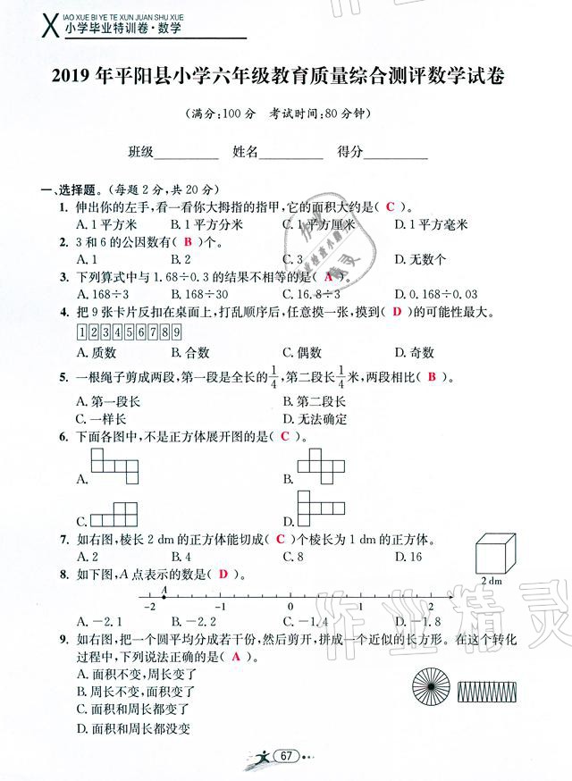 注:目前有些书本章节名称可能整理的还不是很完善,但都是按照顺序排列的,请同学们按照顺序仔细查找。练习册 2021年小学毕业特训卷数学温州专版 答案主要是用来给同学们做完题方便对答案用的,请勿直接抄袭。