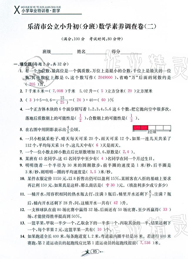 注:目前有些书本章节名称可能整理的还不是很完善,但都是按照顺序排列的,请同学们按照顺序仔细查找。练习册 2021年小学毕业特训卷数学温州专版 答案主要是用来给同学们做完题方便对答案用的,请勿直接抄袭。