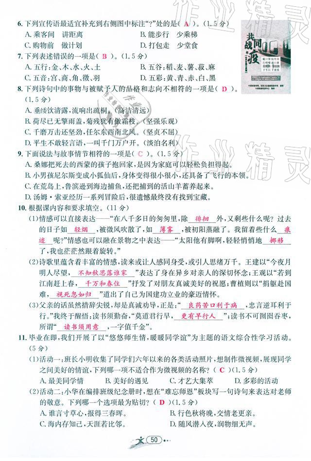 注:目前有些书本章节名称可能整理的还不是很完善,但都是按照顺序排列的,请同学们按照顺序仔细查找。练习册 2021年小学毕业特训卷语文温州专版 答案主要是用来给同学们做完题方便对答案用的,请勿直接抄袭。