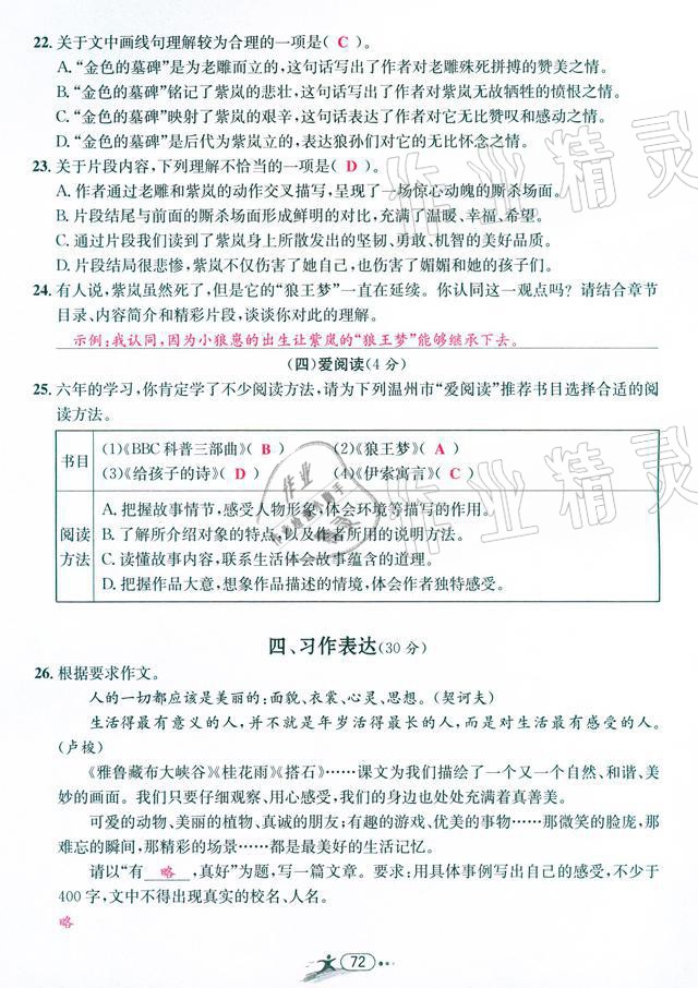 注:目前有些书本章节名称可能整理的还不是很完善,但都是按照顺序排列的,请同学们按照顺序仔细查找。练习册 2021年小学毕业特训卷语文温州专版 答案主要是用来给同学们做完题方便对答案用的,请勿直接抄袭。