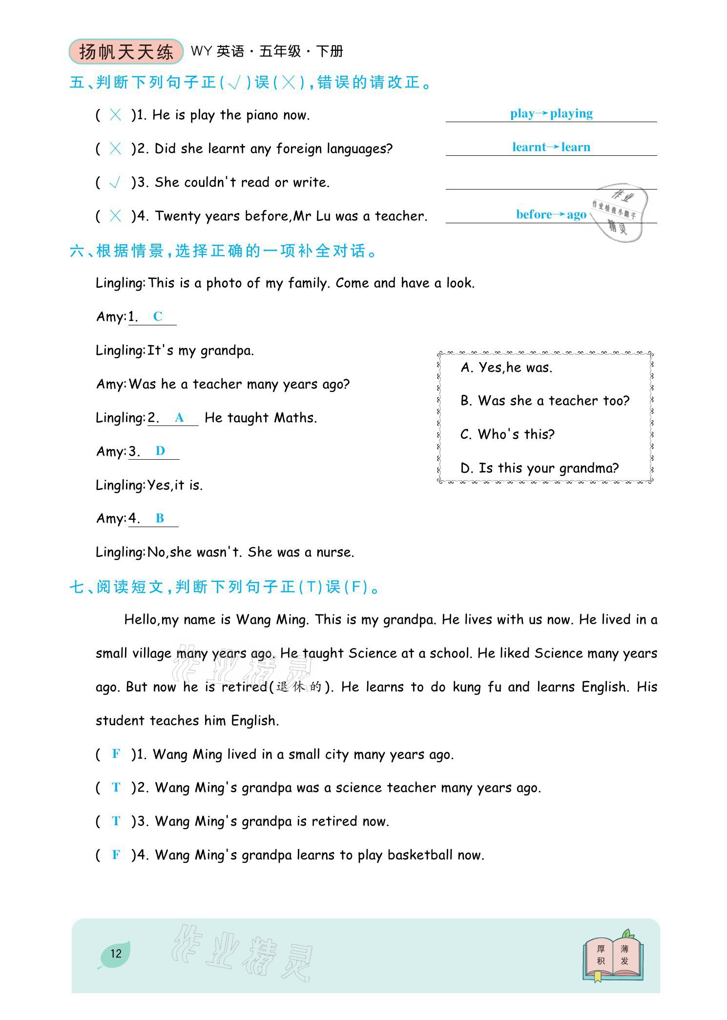 注:目前有些书本章节名称可能整理的还不是很完善,但都是按照顺序排列的,请同学们按照顺序仔细查找。练习册 2021年扬帆天天练五年级英语下册外研版 答案主要是用来给同学们做完题方便对答案用的,请勿直接抄袭。